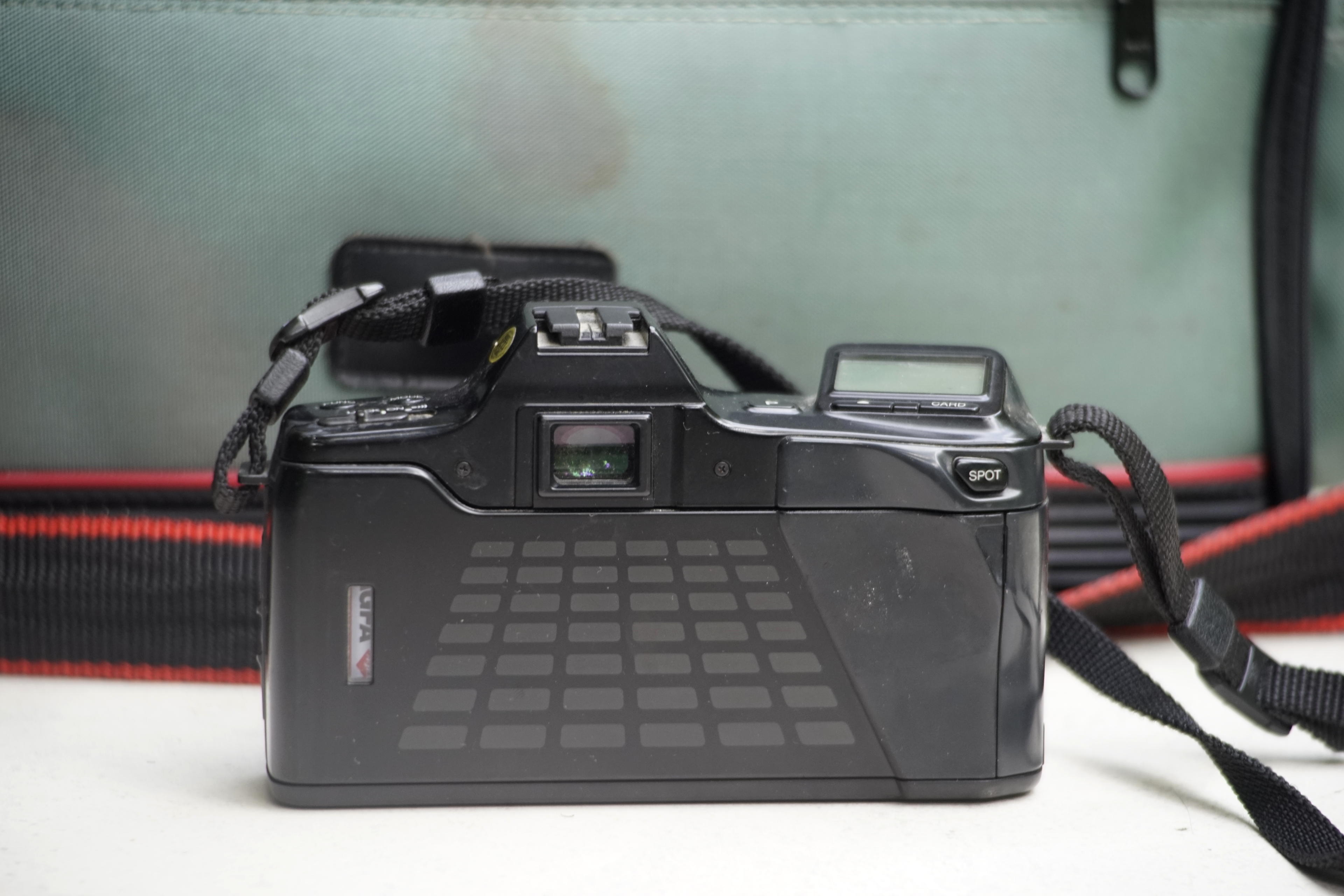 Aber ansonsten geht sie scheinbar. Auch hier liegt ein Film drin, sodass ich noch nicht genau testen konnte, ob der Verschluss macht, was er soll, ebenso ob die Blende richtig gesteuert wird, aber das werde ich dann ja raus kriegen. Diese Kameras sind ja ziemlich unverwüstbar. Die waren noch recht over engineered damals. Gut ist übrigens, dass sie einfach zwei AA verwendet, schlecht ist, dass ihr die NiMH-Akkus zu schwach sind. Muss ich die guten wiederaufladbaren Lithium-AAs nehmen, denke ich.