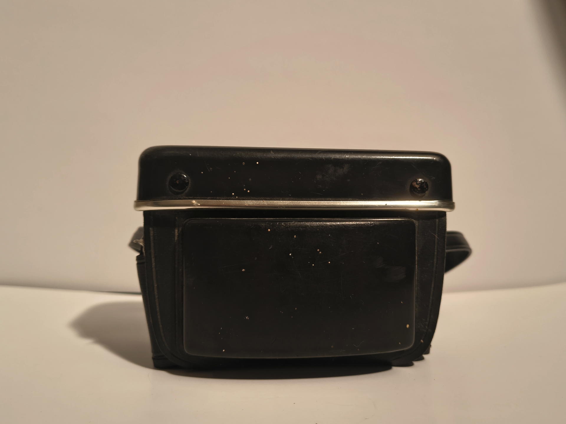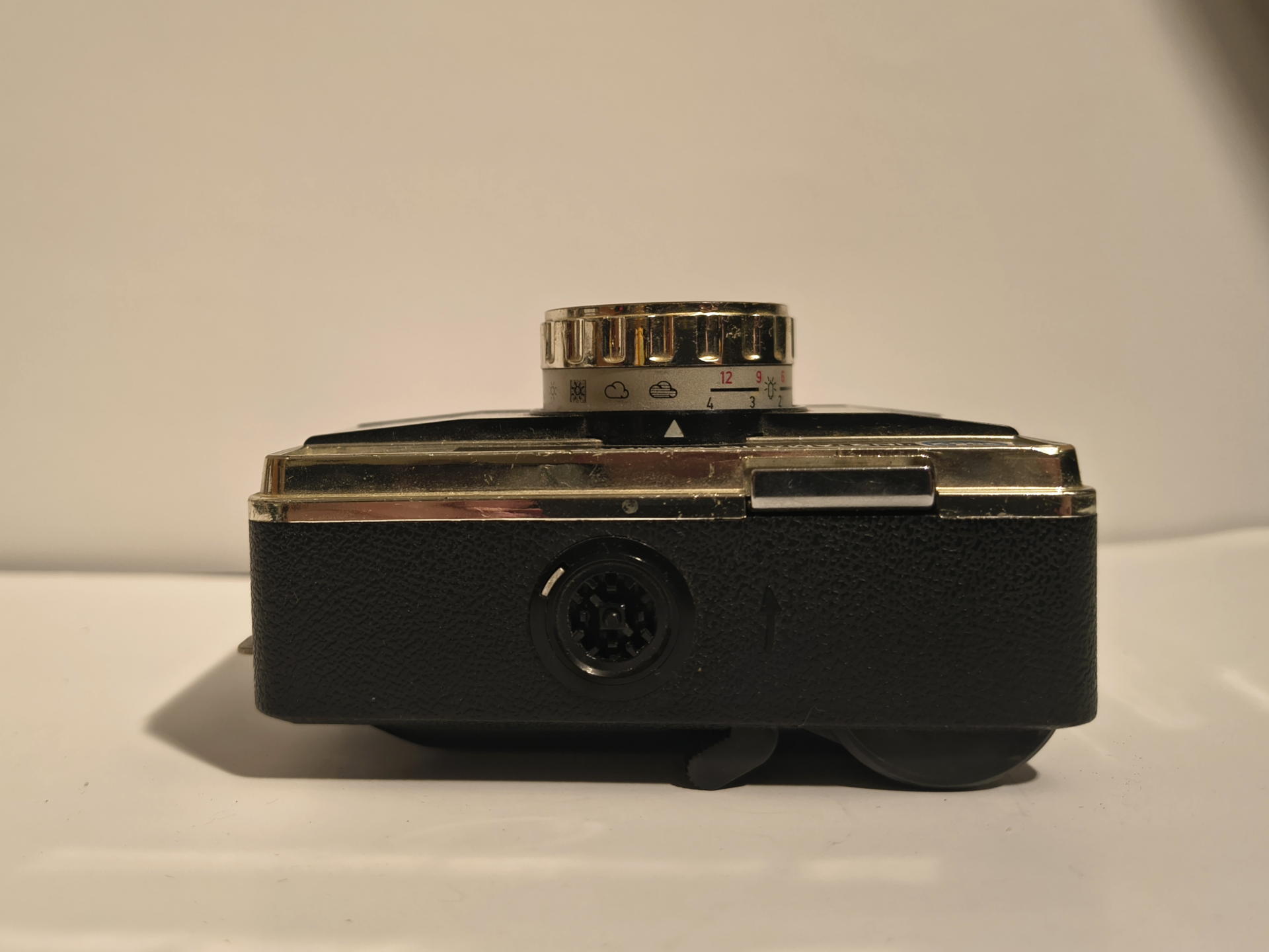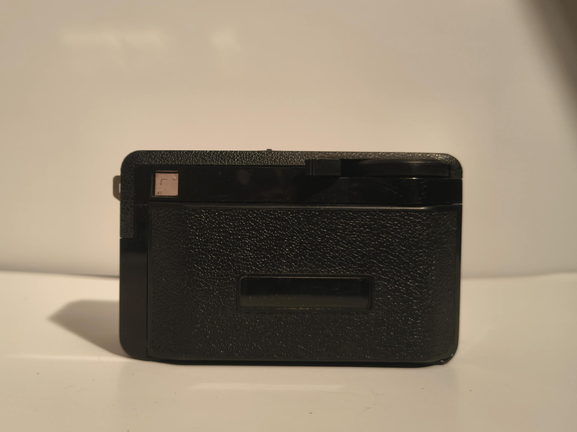 Hier geht es aber um die Standard-Ausführung: Ein Sucher, ein Objektiv, eine Kiste. Das Internet behauptet, die Kamera könnte zwei Zeiten. (1/40s und 1/80s.) Ich bezweifle das etwas. Vielleicht, wenn man die linke Seite der Entfernungsskala verwendet, also die mit Metern/Fuß beschriftete, die für Blitz gedacht ist? Dann macht sie die langsame Zeit? Und sonst die schnelle, für Outdoors? Man weiß es nicht! Die Betriebsanleitung, die auch irgendwo im Netz rum schwirrt, ist nicht besonders präzise, was Details angeht. Das ist der Vorläufer dieser 16mm-Kassetten-Schnapper, die wir auch alle zu Hause als Erbstück rum liegen haben und die es sich nicht lohnt, einen teuren Film dafür zu kaufen!