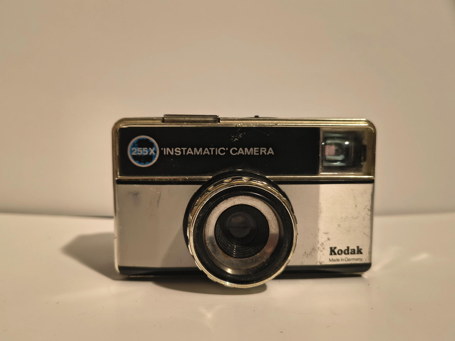 Die andere Kamera, die ich im Keller beim Aufräumen gefunden habe, ist eine Kodak Instamatic 255x. Die wurde ab 1971 gebaut und dieses Teil, das ich hier habe, ist tatsächlich viel benutzt worden und sieht entsprechend verschrabbelt aus, trotz de Ledertasche.