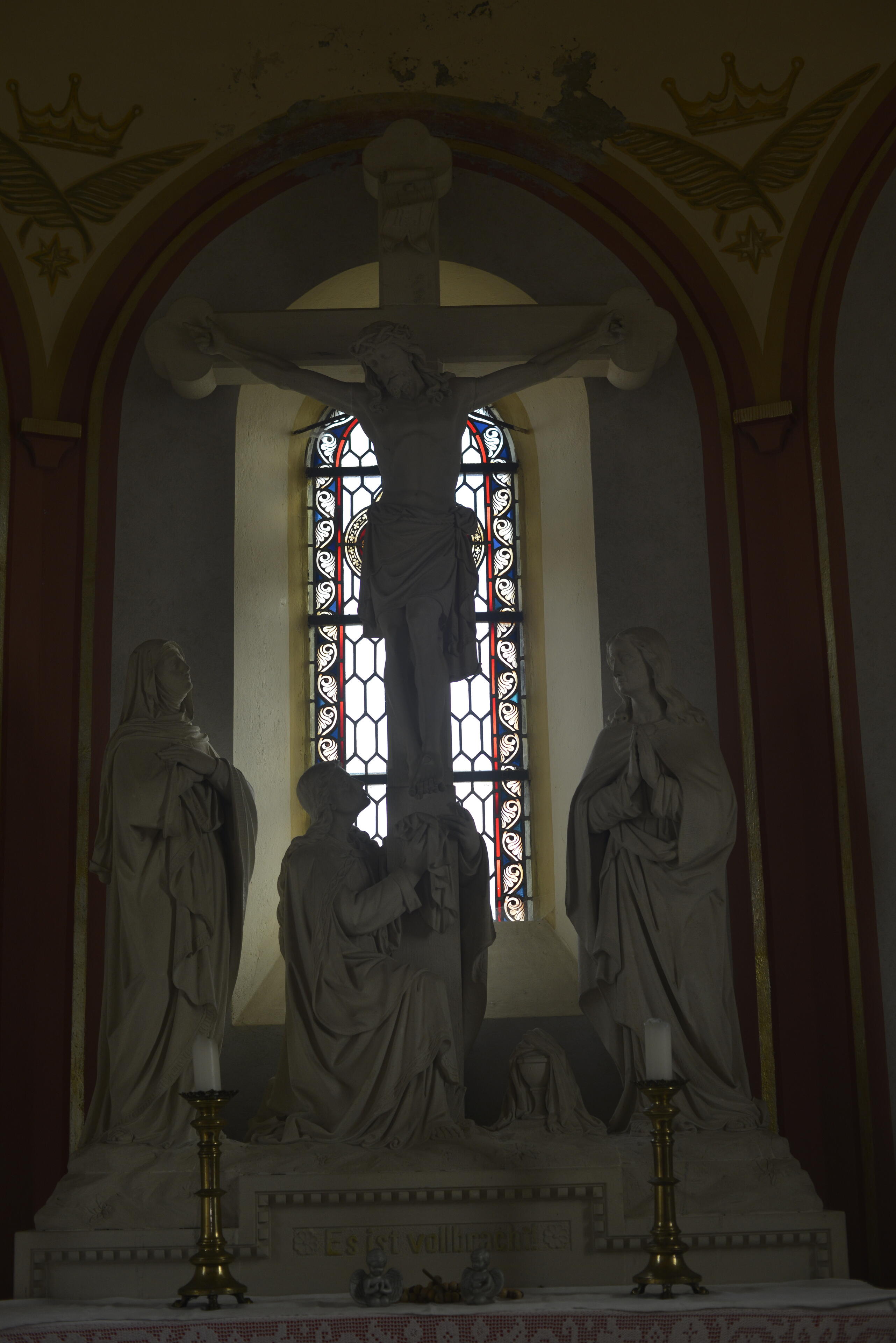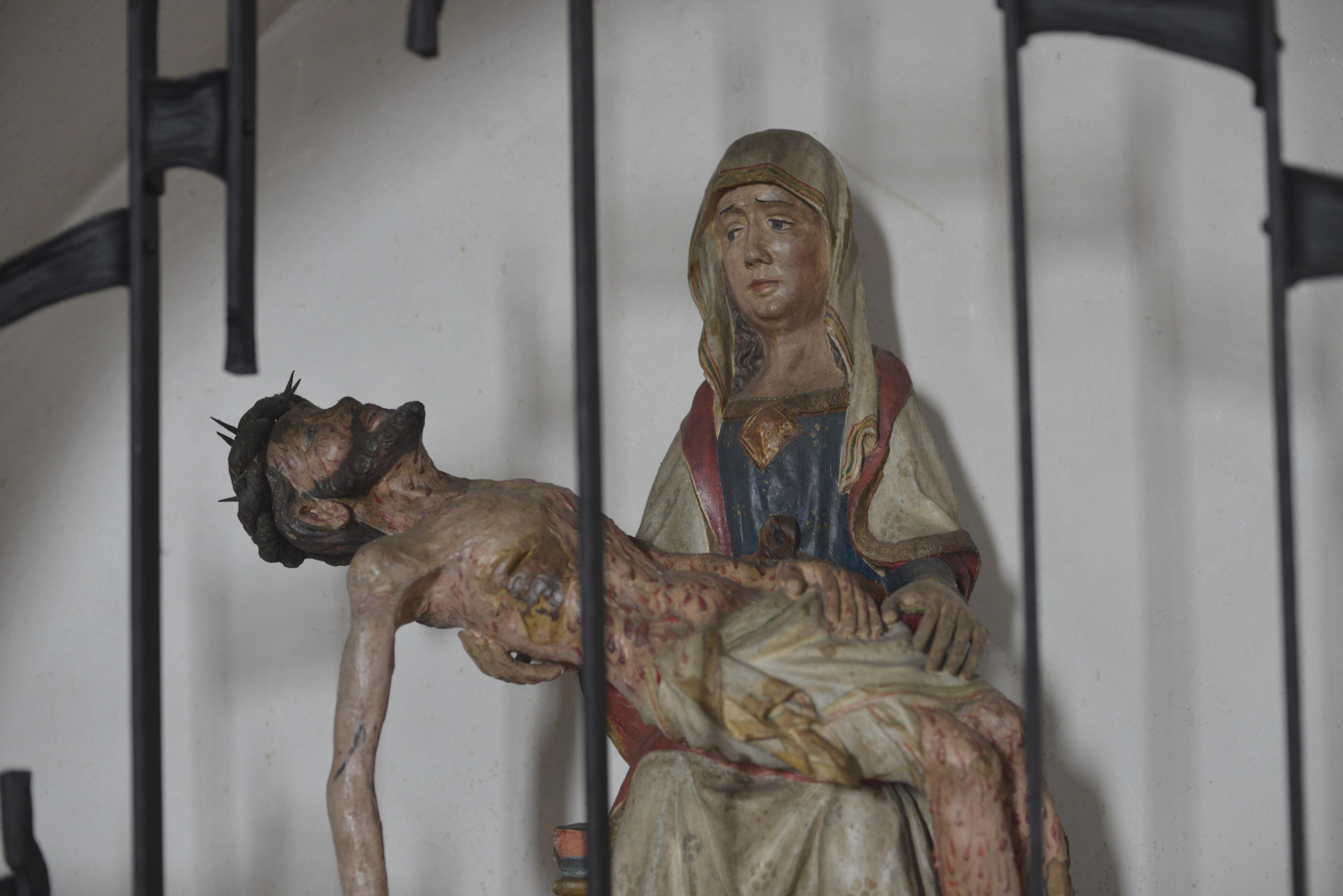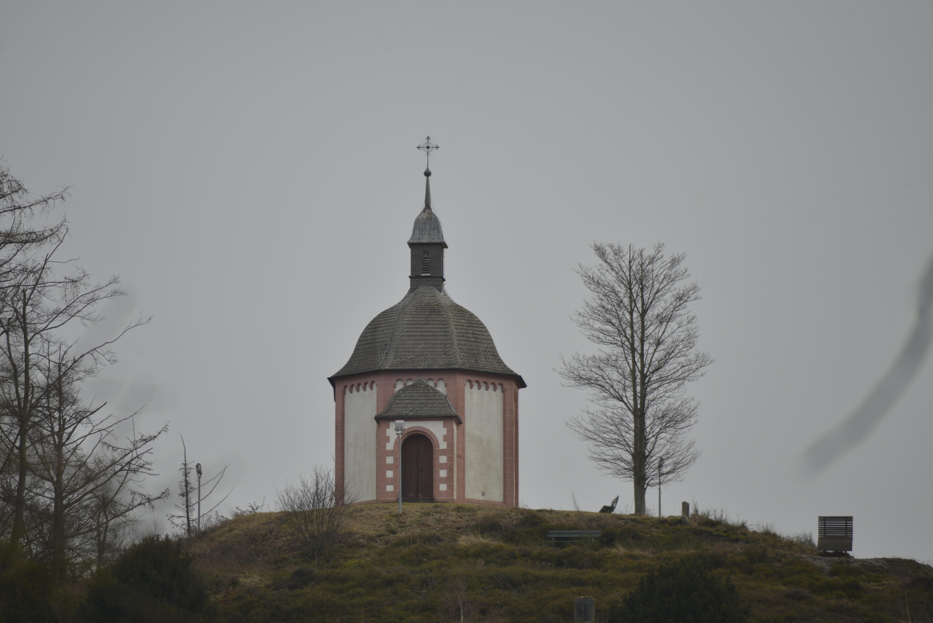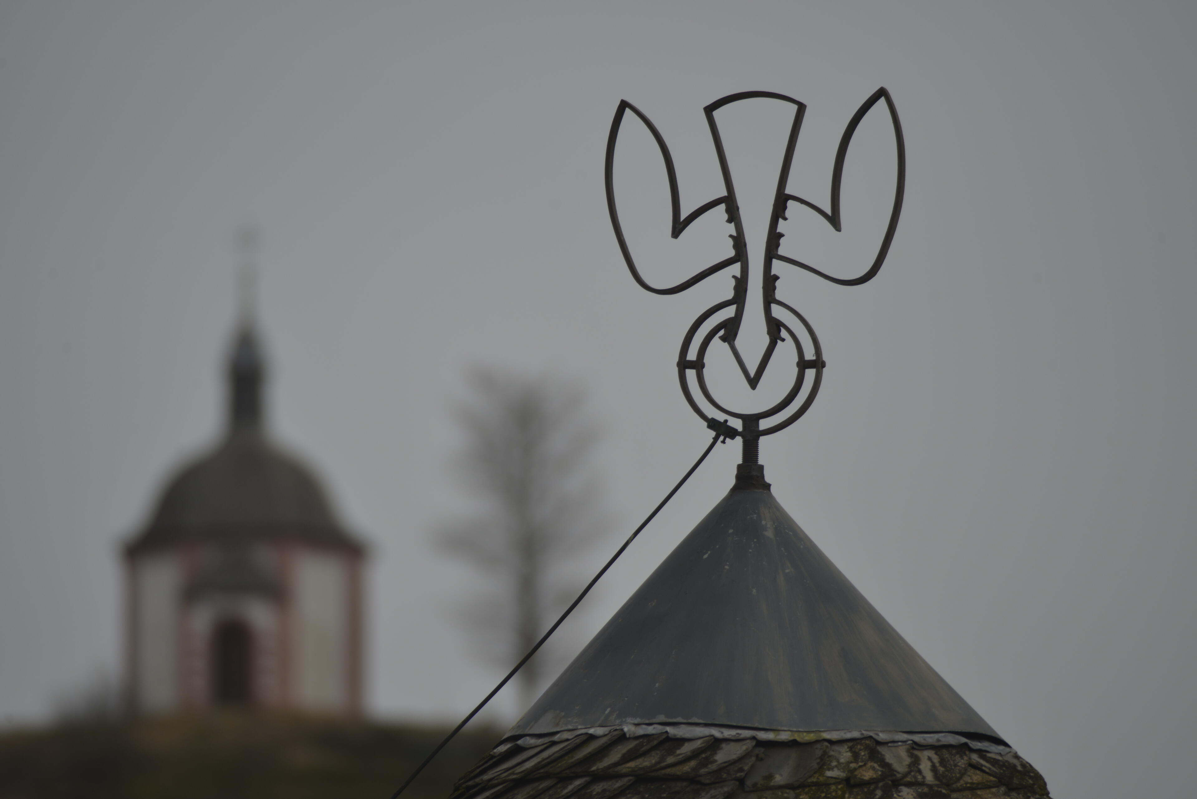 Von oben hat man einen tollen Blick ins Dorf unter einem, was ich mit dem "neuen" Sigma dann mal richtig ausgenutzt habe. Das ist dann jetzt der erste Eintrag, in dem ich das mal ernsthaft verwendet habe, nicht einfach nur, weil ich testen wollte, was es kann. Das Licht war gut, so musste ich nur selten über ISO 400 hinaus gehen. In der Ferne, jenseits der Windradbaustellen, lauerte zwar diesiges Wetter, aber insgesamt hatten wir echt Glück an diesem Tag. Drinnen in der Kapelle ist es aber wie immer zu dunkel. Und irgendwann habe ich dann auch auf das 200mm AI gewechselt, weil man hier oben gar nicht so weit weg ist, dass sich 400mm lohnen! Gut, man kann die Raben am Kirchturm erkennen, aber dafür ist der Kirchturm gar nicht ganz ins Bild zu kriegen!
