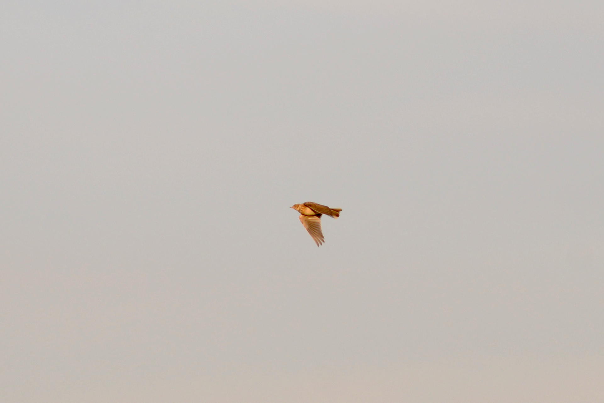 So, und jetzt zur Hauptattraktion des Abends: Die Feldlerchen, die heute mal so still gehalten haben, dass ich sie sogar mit dem manuellen Tele schnell genug scharf gestellt bekommen habe. Nur, dass die noch immer viel zu weit weg waren und ich sie deshalb aus der Mitte der Bilder habe ausschneiden müssen. Da komme ich dann doch ans Ende des Auflösungsvermögens dieser Kamera. Was kostet noch mal eine D850? *hust* Oder diese neumodischen Spiegellosen? *doppelhust*