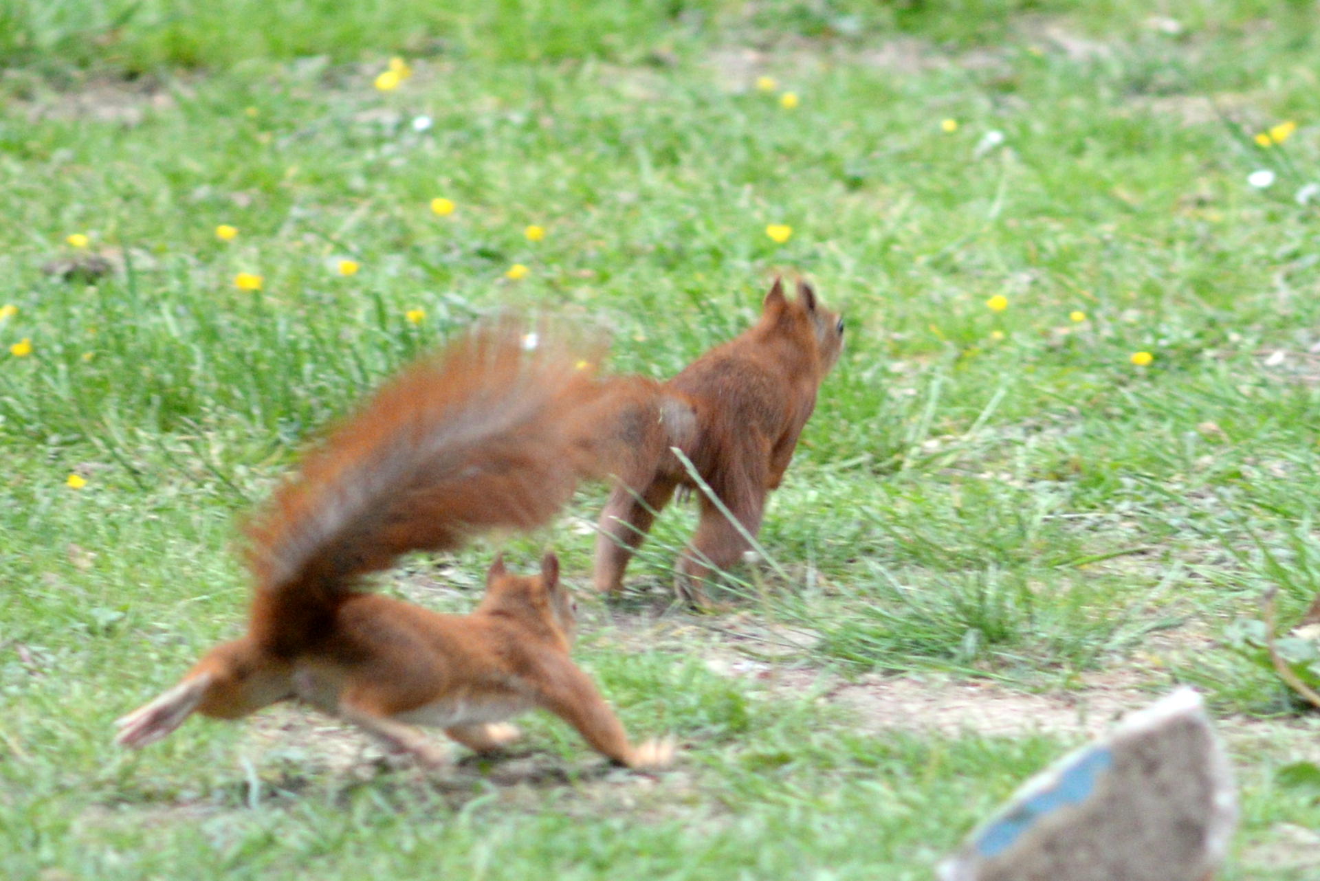 Aber wie gesagt, die Eichhörner eichhörnerten wie bekloppt die Bäume rauf und runter, hintereinander her, am Boden entlang zwischen den Parkbesuchern durch, völlig losgelöst, sozusagen: