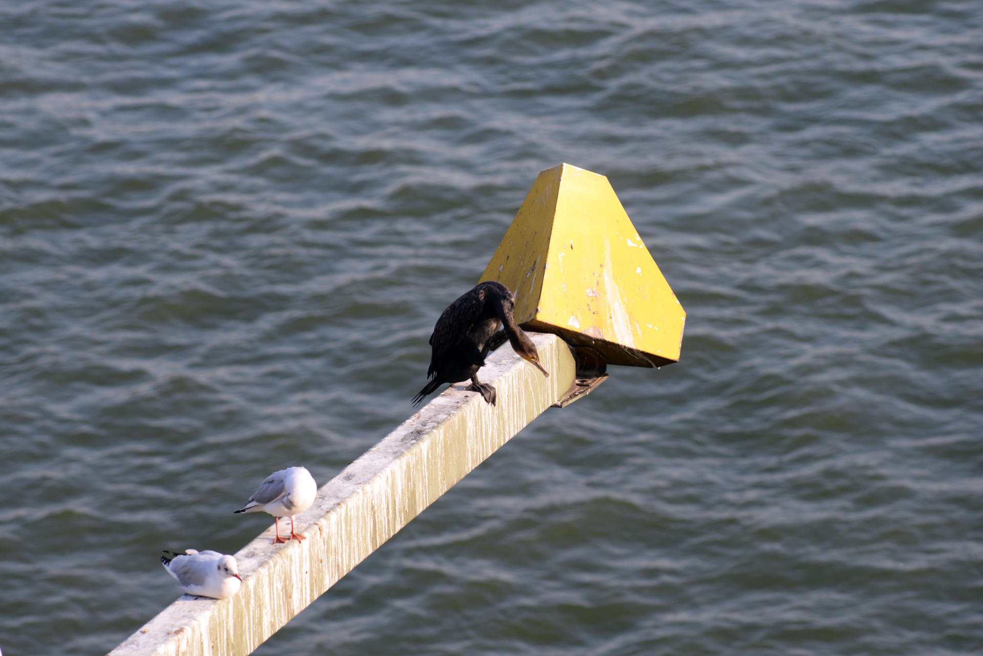 Endlich hatten wir es dann die halbe Brücke entlang geschafft, da fielen mir die Kormorane auf den Auslegern ins Auge, während J und M sich den Liebesschlösser-Cache vorgenommen haben. Den haben J und ich ja schon vor acht Jahren gemacht, aber M ist dann doch irgendwie neu in der Gegend. Also hatte ich eine Ausrede, die Kamera auf alles zu richten, was nicht bei drei auf den Brückenpfeilern war.