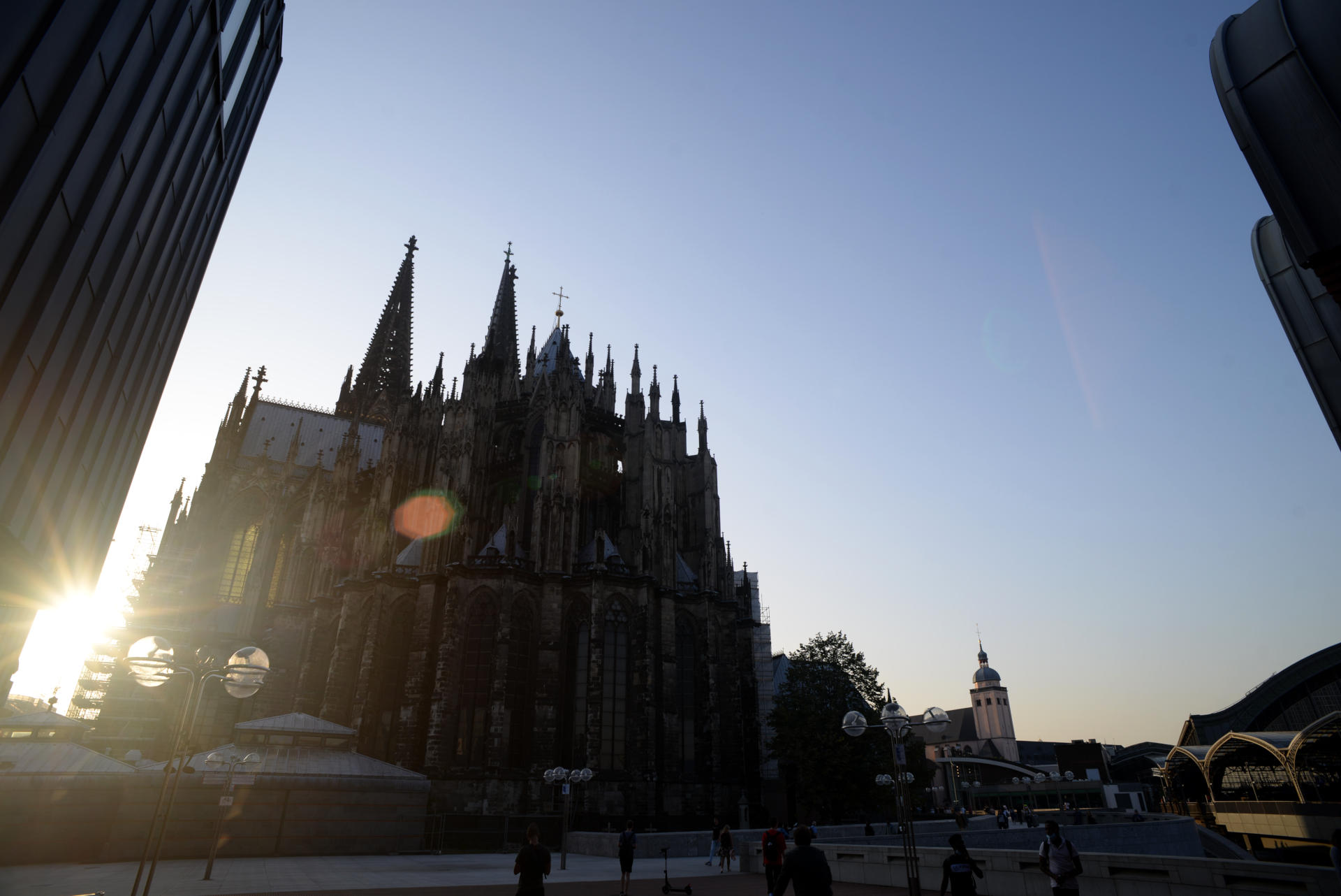 Und da haben wir ihn, den Dom, in all seiner weitwinkeligen Pracht! Durch Häuserzeilen hindurch, neben seinem Bahnhof, mit ein weing Flares und Ghosts, die eigentlich sogar ganz hübsch sein können, wenn man es nicht so übertreibt wie bestimmte Hollywood-Größen... Etwas abgeblendet erhält man sogar ganz nette Sonnenstrahlen und bunte Vielecke, die die Abendstimmung ganz gut unterstützen.