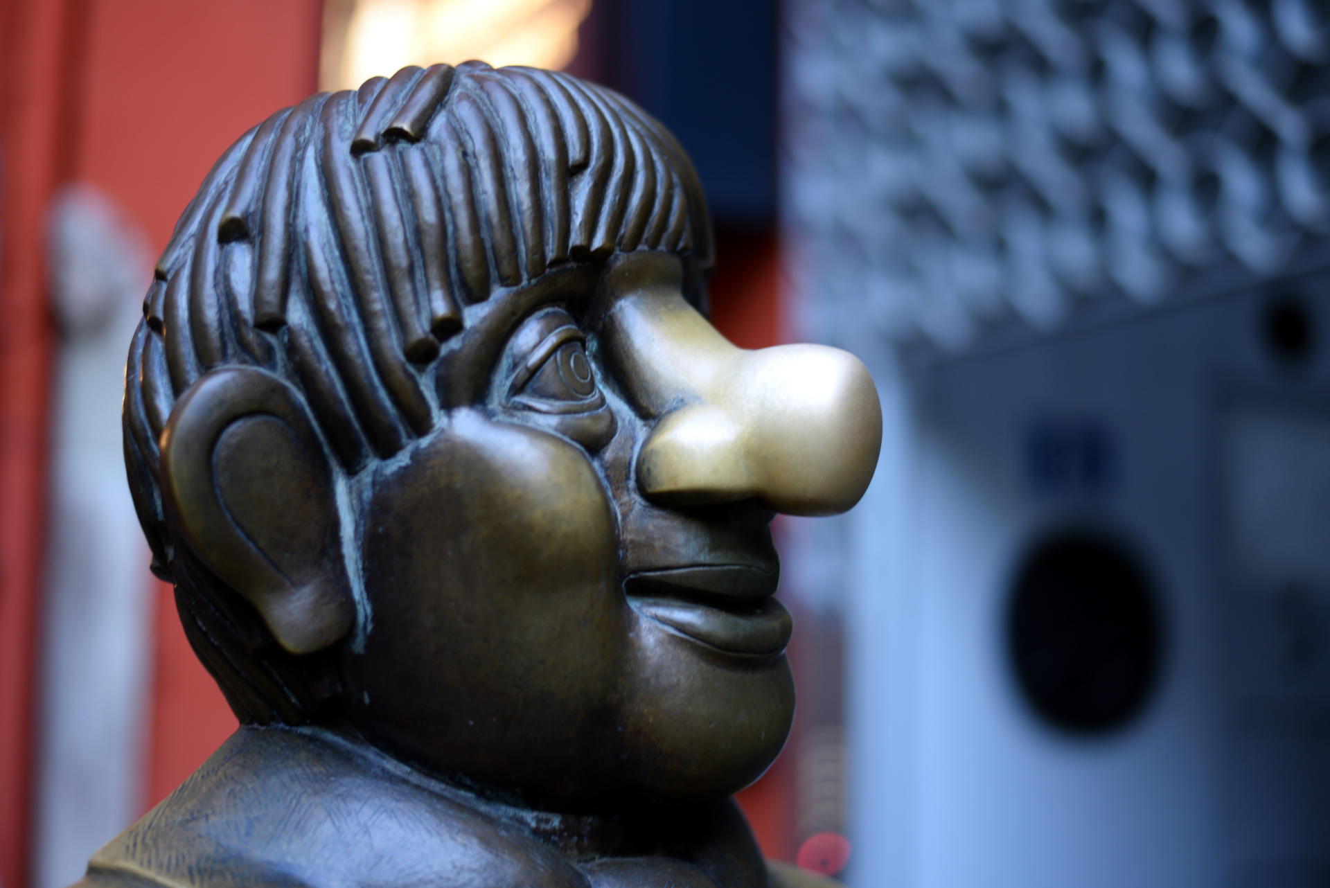 Danach haben wir dem kölschen Urgestein Tünnes und Schääl noch einen Besuch abgestattet. Seltsamer Weise war dieses Urgestein aus Bronze. Naja, aber wenn es so im Cache steht? Leider ist es auch hier immer dunkel und schattig, sodass die Bronze kaum Highlight wirft. Mit dem 85er Portrait-Tele habe ich trotzdem genug Licht gehabt und zugleich wenigstens etwas Unschärfe in den Hintergrund bekommen. Könnte aber gerne mehr sein. Wenn Objektive mit noch größerer Offenblende nicht gleich so viel teurer wären... Da belibt nur eins: Einfach die Gebäude im Hintergrund ein bisschen nach hinten versetzen!