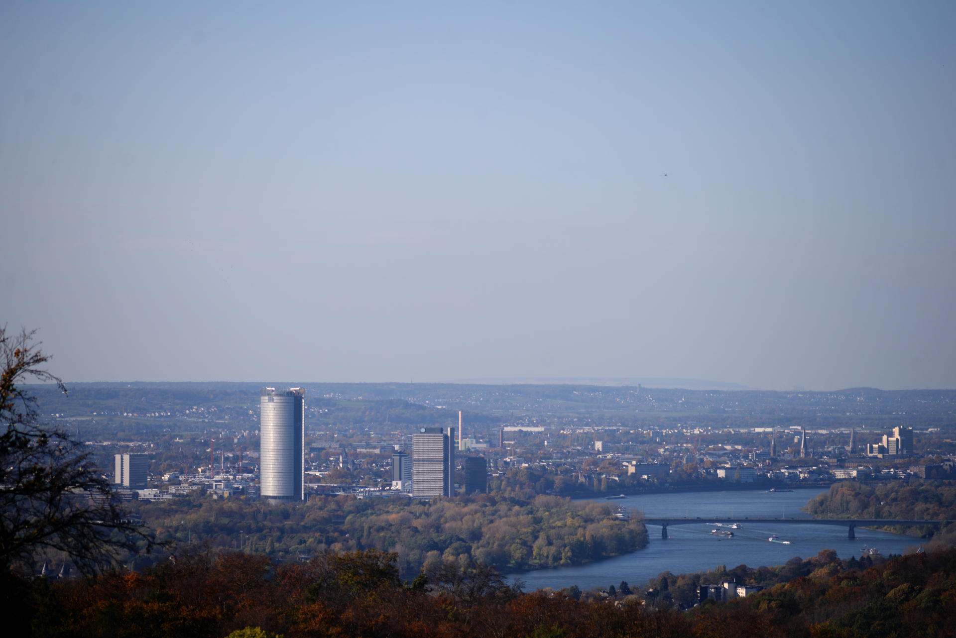So, nachdem ich jetzt erst mal den Rant los geworden bin, hier jetzt herbstliche Fotos vom Siebengebirge. Fangen wir an mit einem Blich durch das Tele auf das Gebäude oben auf dem Berg direkt neben dem Handymast: