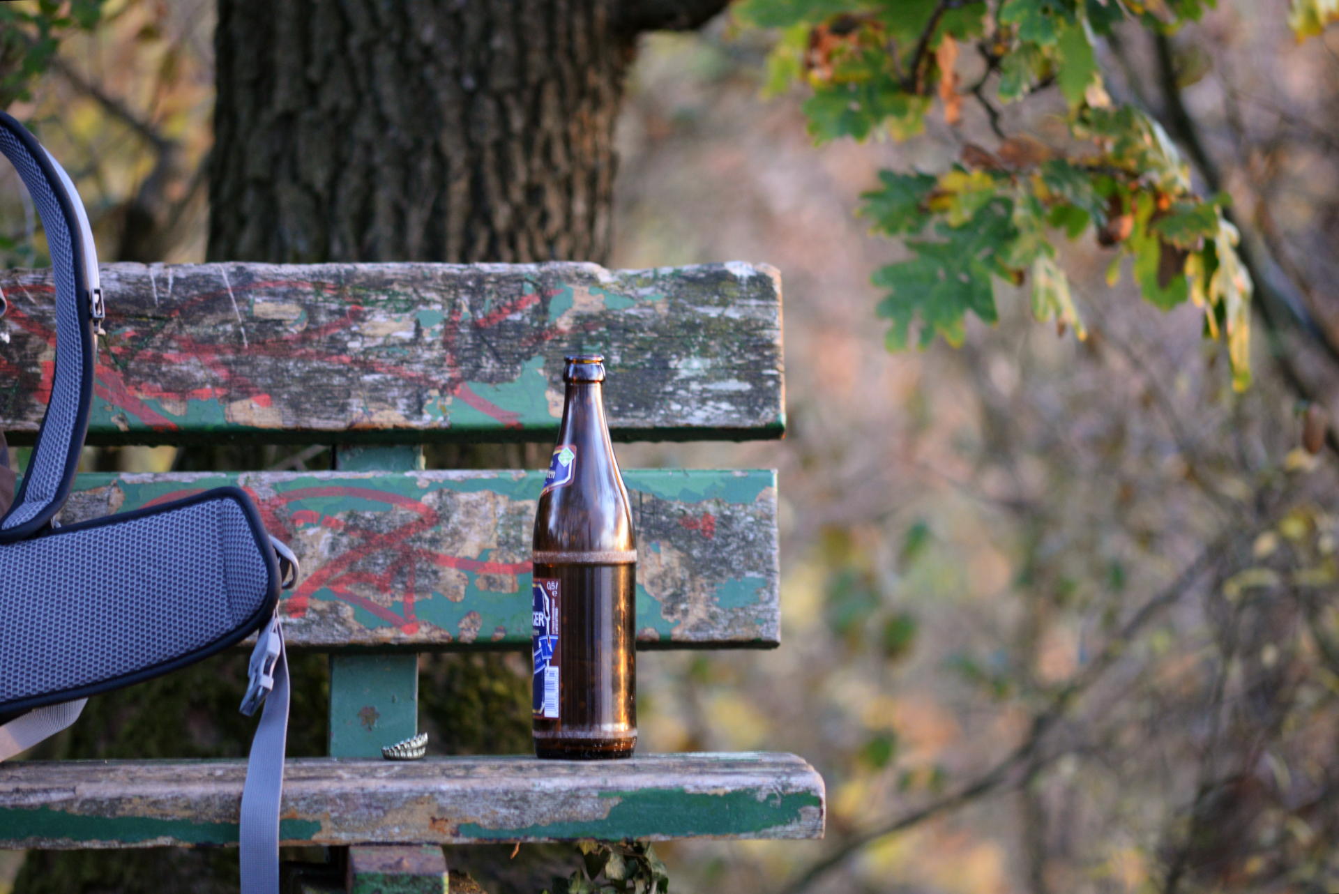 Aber auch die schönste Abendstimmung geht irgendwann zu Ende. Wir also wieder den Berg runter, da stand da dieses Fahrrad an den Baum gekettet. Wahrscheinlich, nehme ich an, gehörte das einem der Jungs, die da oben ihr Bierchen gepichelt haben. Schön, dass die Jugend zum Saufen in die freie Natur geht, hat Corona ja noch was Gutes bewirkt.