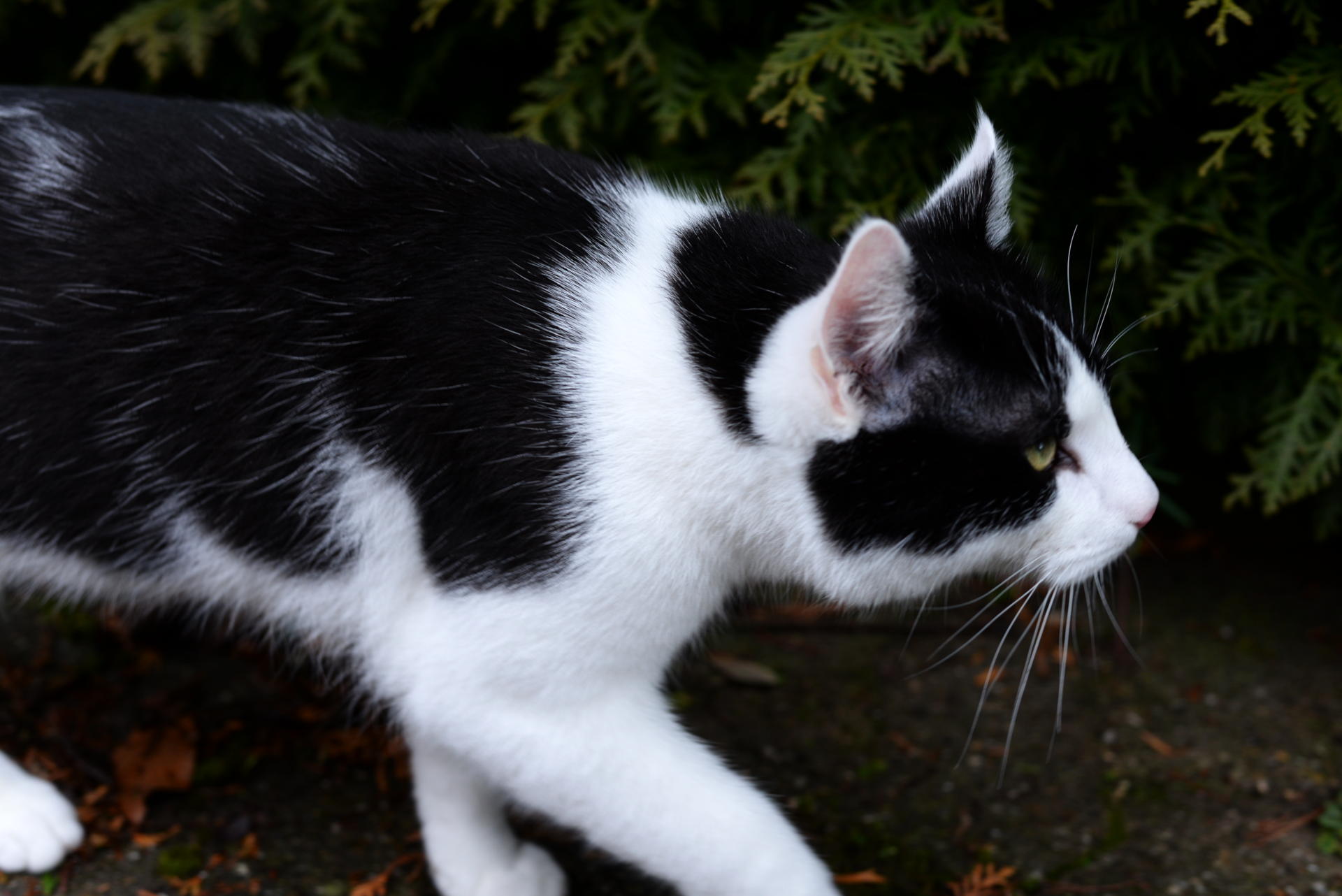 Eben noch schnell hinterher die andere Nachbarskatze, die ich heute vor der Türe erwischt habe. Nicht ganz scharf, weil Katze immer viel zu schnell sind und überhaupt, Miezekatze!