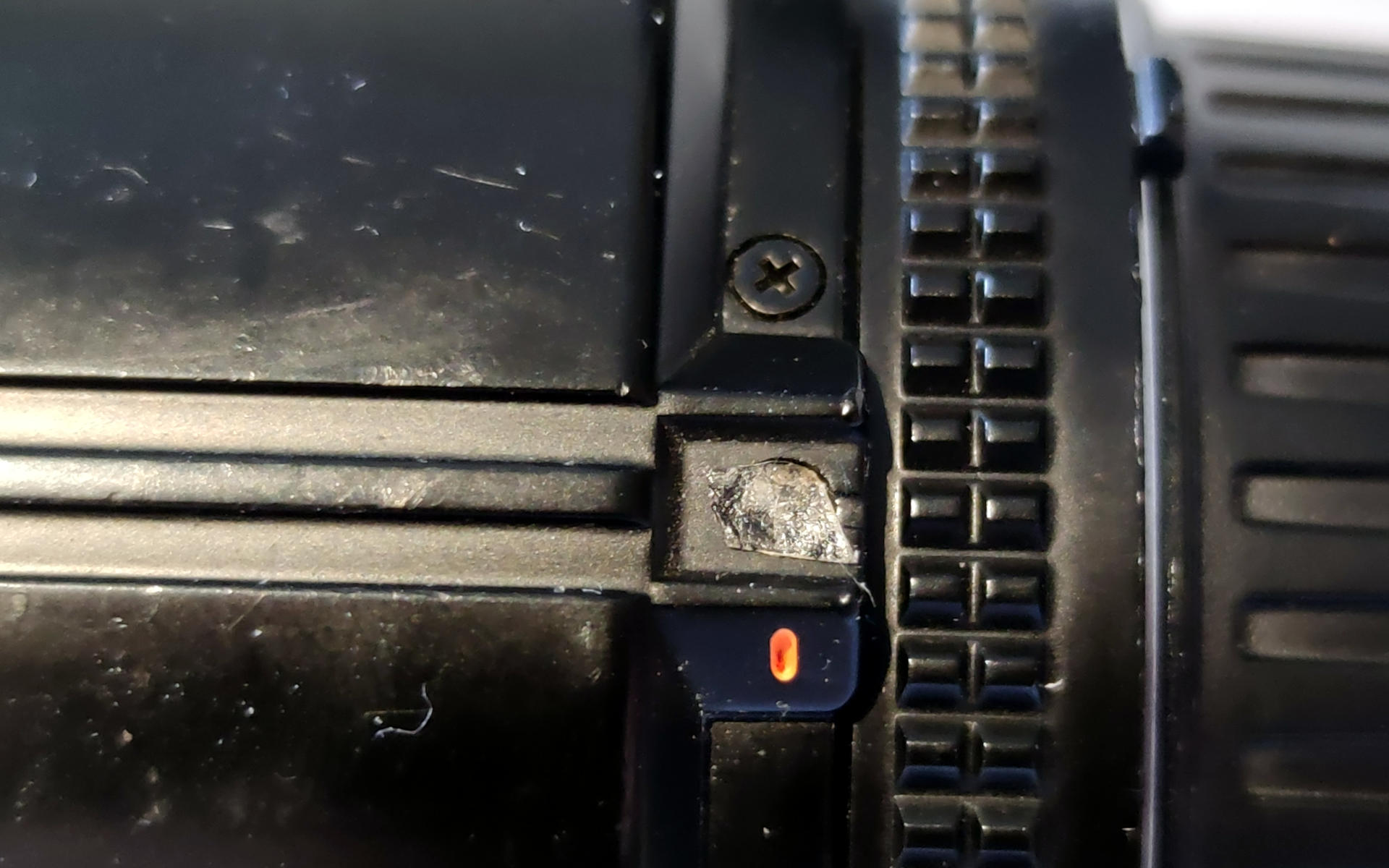 Also: Etwas doppelseitiges Teppichklebeband, ein Stückchen von dem Plastikröhrchen eines Q-Tip, fertig ist das Provisorium. Wenn das so hält: OK. Wenn es sich als praktikabel erweist, das doppelseitige Klebeband aber - wie zu erwarten - irgendwann aufgibt, werde ich das mit einem Tropfen Plastikkleber fest machen. Und wenn ich mal zu viel Geld und Zeit habe (also wahrscheinlich zur gleichen Zeit, wenn Schweine fliegen lernen), frage ich mal bei Nikon nach, ob man ein passendes Original-Ersatzteil bekommen kann. (Ich bezweifle es, die haben durch die Mirrorless-Revolution gerade ganz andere Probleme.) Am liebsten würde ich diesen Mechanismus gerne komplett los werden, der ist mir nämlich von Anfang an auf bestimmte Körperteile gegangen (siehe Titel des Eintrags), aber dafür müsste ich das gute Teil ein ganzes Stück weit auseinander nehmen und modifizieren, das will ich dann doch vermeiden.