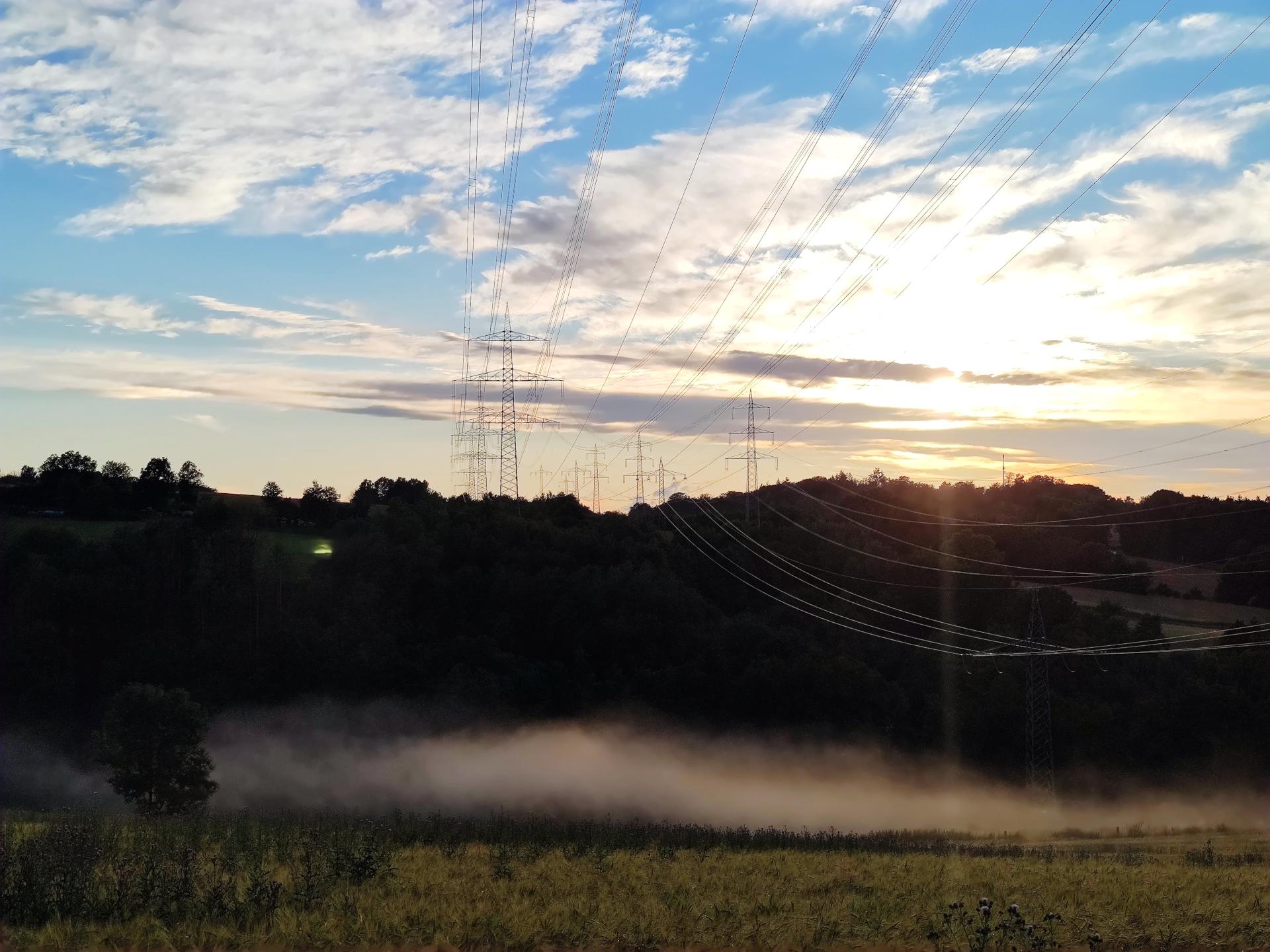 Da hat es den ganzen Tag geregnet und ich dachte so bei mir: "Die Sonne kommt heute bestimmt nicht mehr raus, kannste auch 'nen s/w-Artikel raushauen." Und dann kam sie dann doch noch, die Sonne. Spät am Abend, nach dem Abendessen, also nur noch schnell die Olympus geschnappt, der Film muss ja voll werden, und dann raus. Deswegen hatte ich jetzt leider die Digitale nicht dabei, um den Nebel und den Sonnenuntergang abzulichten. Also musste ich das Handy nehmen:
