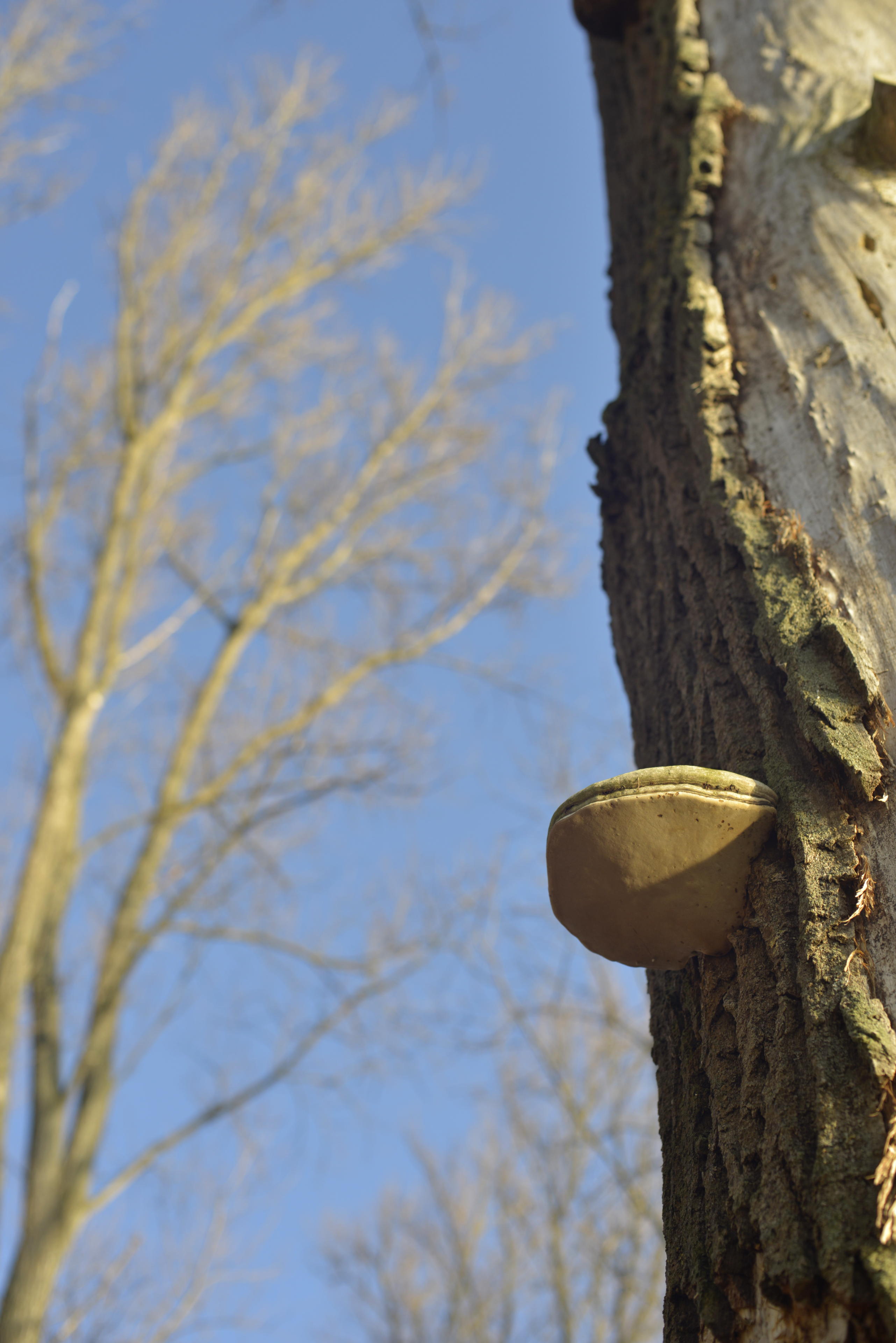 Dann nacheinander drei Sachen in den Bäumen hängen sehen, die hier eher nicht hin gehören: Eine Weihnachtsbaumkugel, ein Osterei und eine Gummiente. (Die habe ich auch in s/w mit der Canon gemacht und mich bei meinen Notizen glatt wieder vertippt, sodass die jetzt Gunniente heißt. Ist eine Freundin vom Rheinschwein. Gunhilde, die Gummiente, genannt Gunniente!)