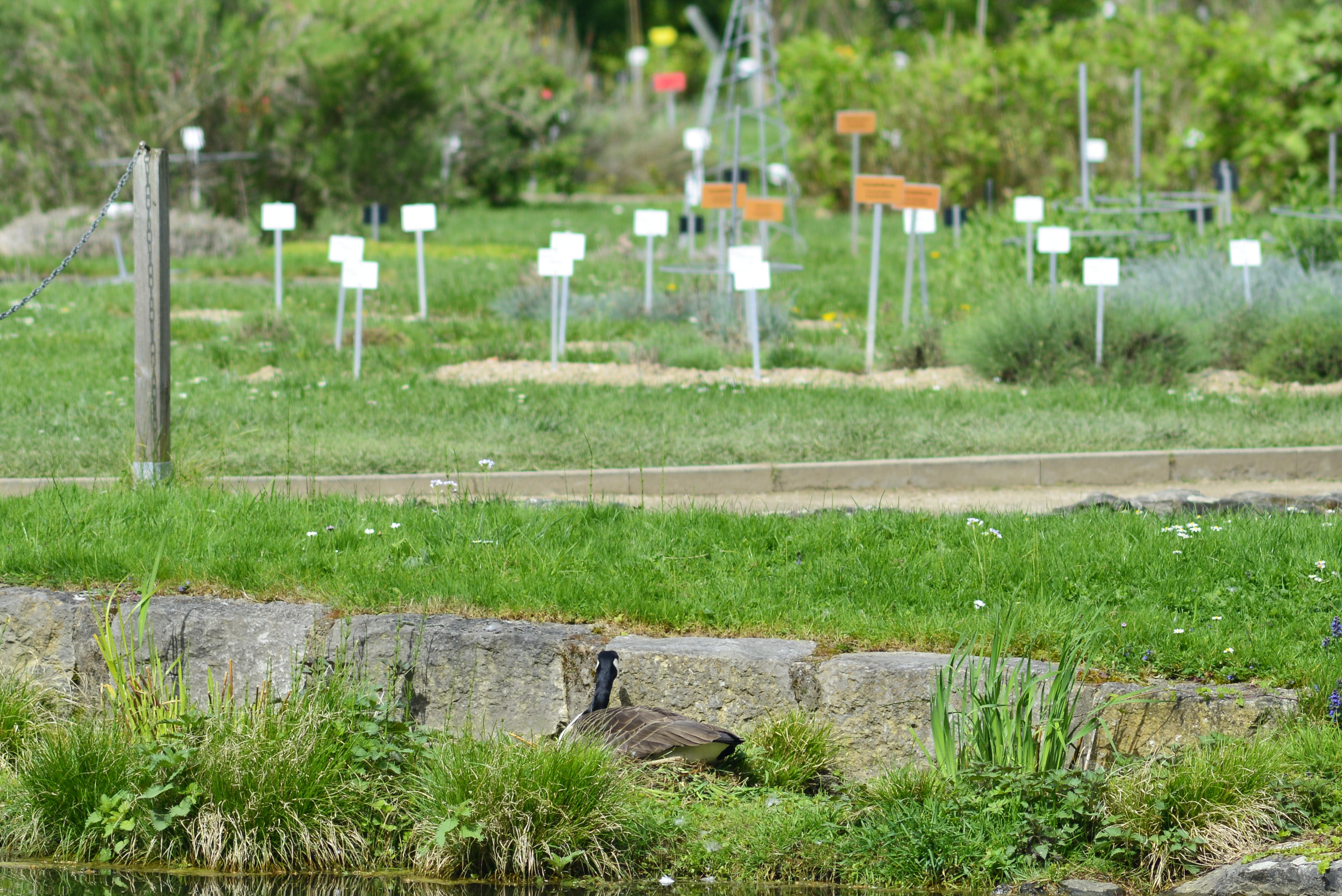 Aber wie man sieht, nur ein paar, denn gleich danach geht es auch schon weiter mit den ersten Blumen und Büschen (und manchmal sogar beides gleichzeitig) im Botanischen. Und wenn es anfangs auch nur durch den Zaun ist. Gleich hinterm Zaun begrüßt einen hier der Herr Linne, der in botanischen Kreisen an großes Tier war. Oder ein großes Gewächs? Ein Titan, sozusagen? Obwohl der mit dem Titanenwurz, der hier immer wieder blüht, ja nicht direkt was zu tun hat.