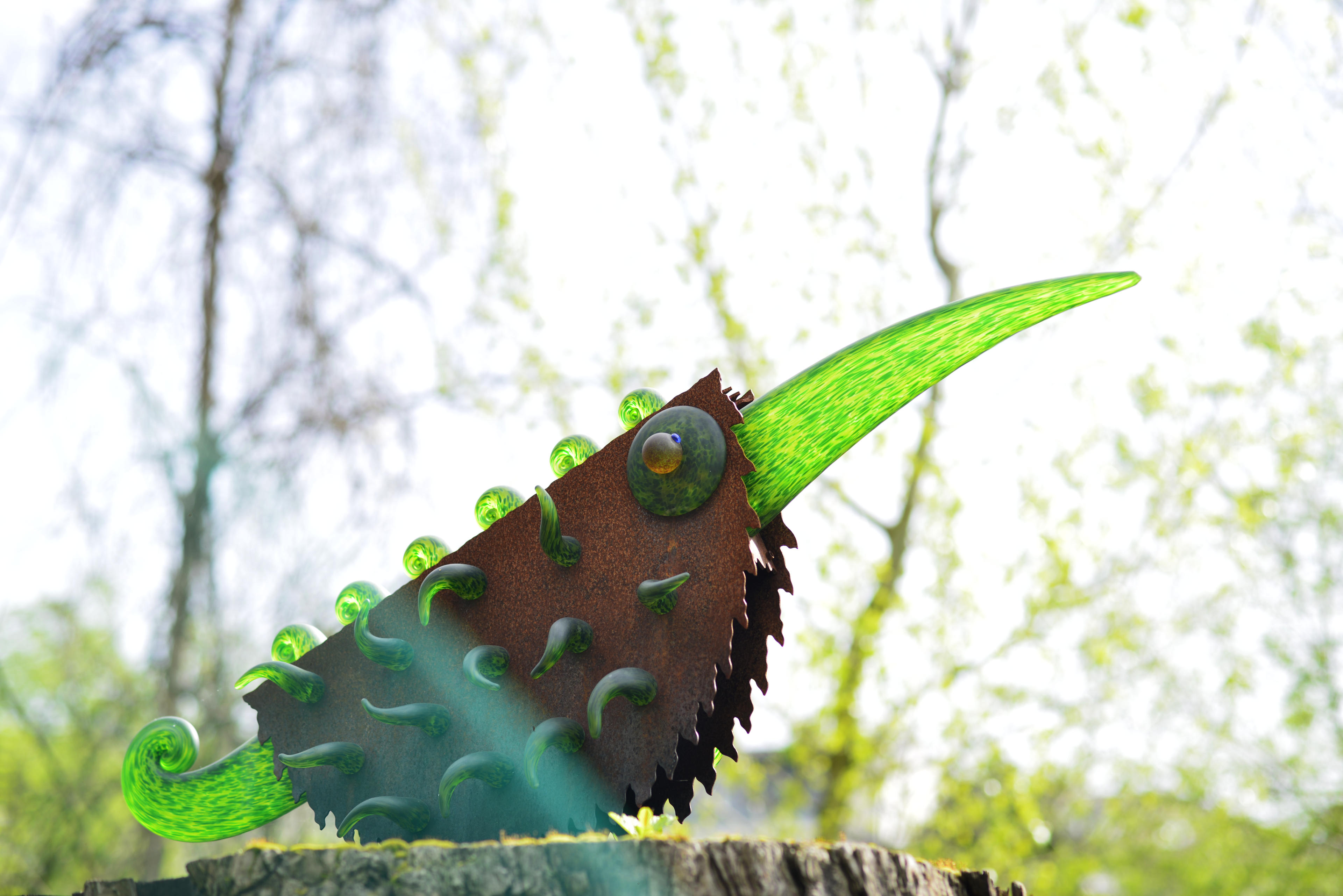 Und nebenan gibt es diesen... Vogel? Also, Kunst aus Glas. Eidechse? Insekt? Ich habe keine Ahnung!