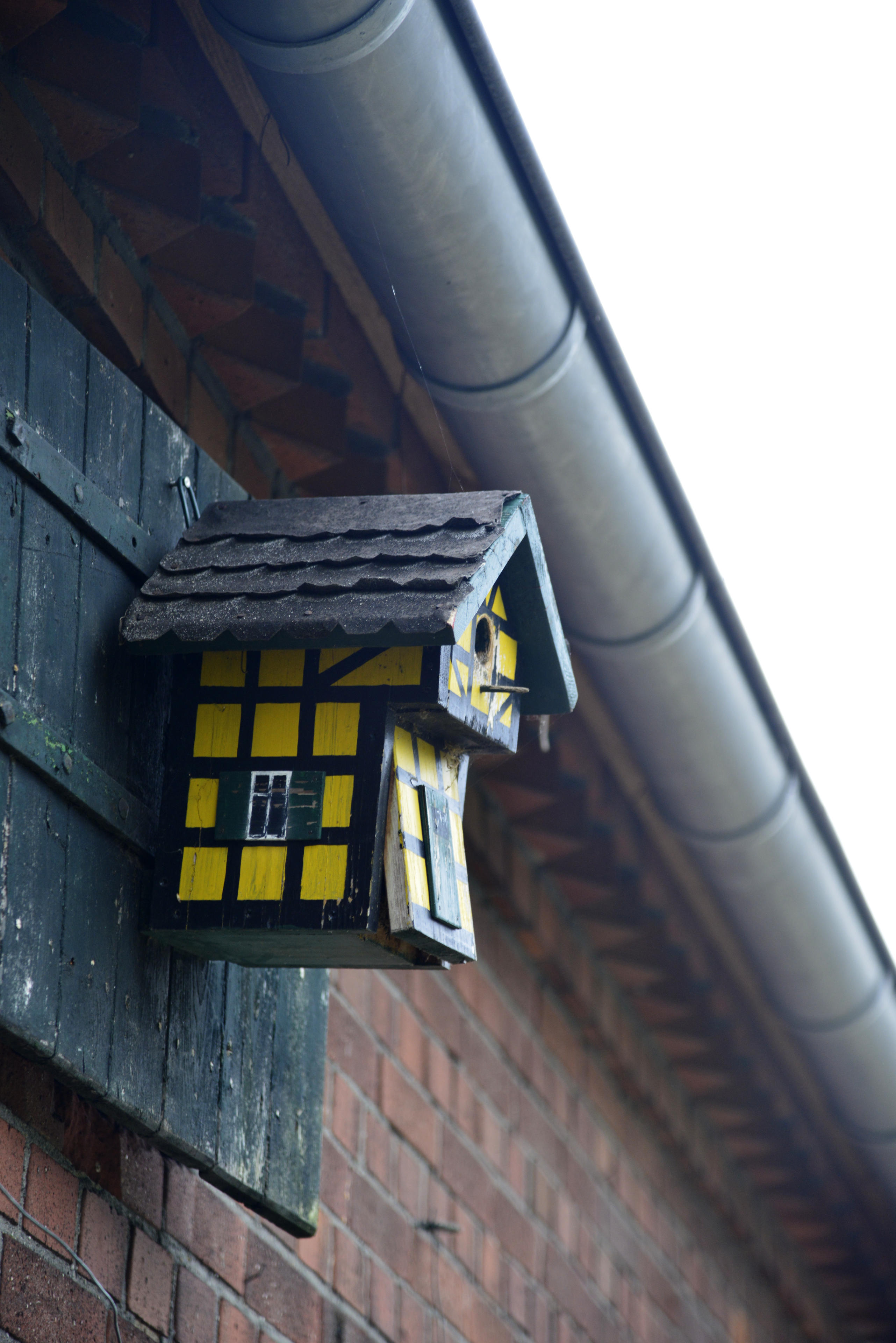 Ansonsten habe ich mal wieder alles vor die Linse genommen, was nicht bei drei auf den Bäumen war. Das rostige alte Ölfass etwa wird so schnell zu einem interessanten Motiv. Oder das Vogelhäuschen unterm Dach. Ich mein, was bleibt einem auf einer Trauerfeier auch übrig? Die trauernde Familie stürzt sich in die Arbeit und guckt, dass alle was haben, und als Gast steht man immer etwas betreten rum, weil man ja auch nix machen kann, außer leise vor sich hin zu trauern. Da kommt einem der große Garten doch sehr entgegen.