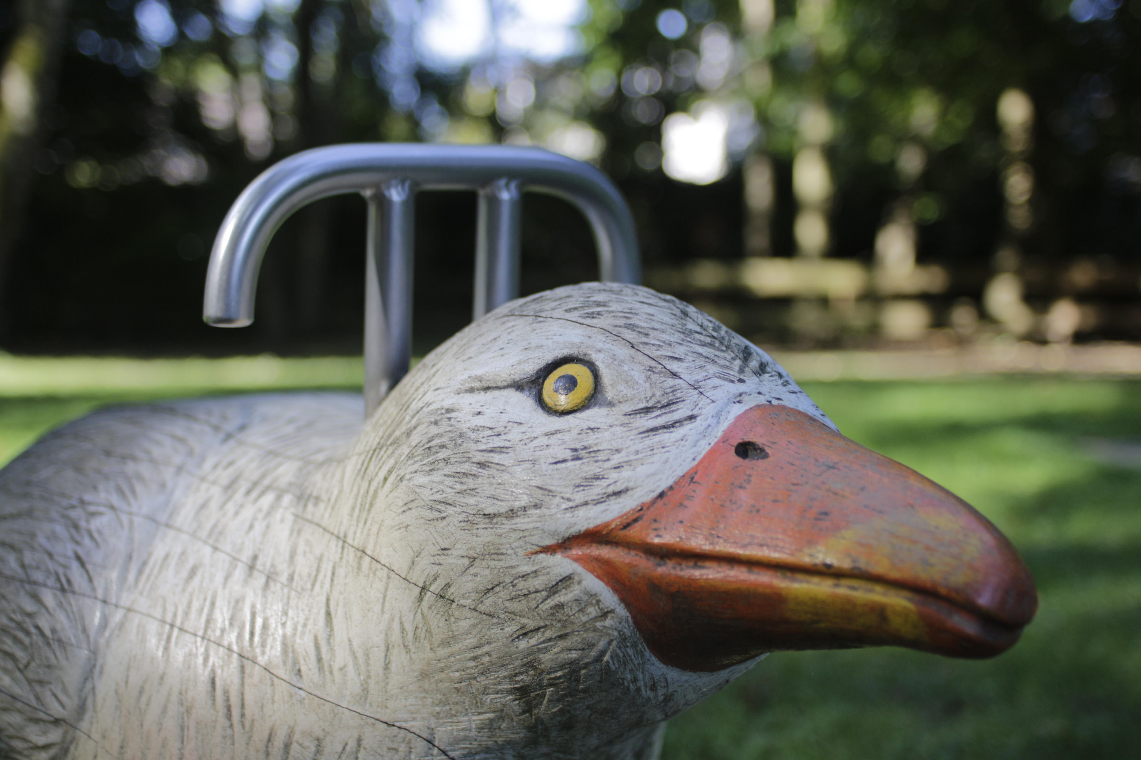Wir haben uns hier jedenfalls eine ganze Weile ausgeruht und sind dann weiter geradelt, bis wir an der üblichen Stelle am Siegwehr raus kamen. Hier saß eine Familie und fütterte gerade die sowieso schon rundlichen Kanadagänse an. Immerhin nicht mit Brot, sondern mit Haferflocken, aber ob das gesünder ist, möchte ich bezweifeln. Aber immerhin bot sich so die Gelegenheit, die Viecher in Aktion zu fotografieren. Ich hatte allerdings wieder nur die Canon mit dem eher schäbigen Kit-Zoom von C dabei, die hat noch immer mein 50er. Und mit dem Weitwinkel alleine ist auf die Entfernung dann doch nicht so viel zu reißen. Wenn man das Zoom weit genug abblendet, geht's. Aber im Gegenzug muss ich dann halt das ISO hoch drehen. Ein Teufelskreis!