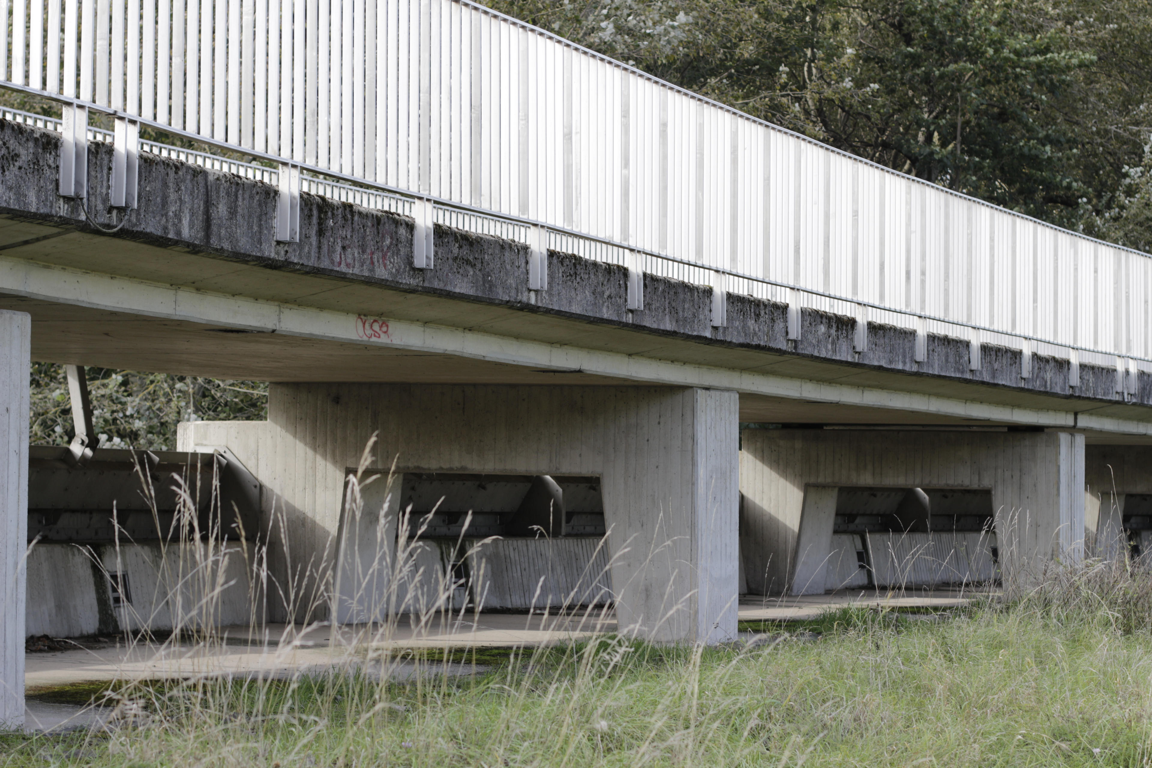 Natürlich ist auch dieses Betonbauwerk von vorne bis hinten mit Graffiti bedeckt, hier nur eine kleinere Auswahl. Die wirklich schmutzigen oder anderweitig kontroversen habe ich zwar ebenfalls dokumentiert, aber ich mache dann hier gerade mal ein bisschen Selbstzensur, denn die Ausdrucksweise, mit der hier Fans von Fortuna Düsseldorf bezeichnet werden, entspricht nicht unbedingt meinem Sprachgebrauch. Und das sag ich, der gerne mal wie ein Rohrspatz schimpft, wie ein Bergarbeiter flucht oder einfach nur den Kaffee auf hat, wenn er sich den dicken Zeh stößt. Es gibt Wörter für die weibliche Anatomie, die man einfach nicht in den Mund nimmt, weil das nicht besonders respektvoll ist. Nennt mich altmodisch, aber Worte formen Gedanken genau so wie andersherum.