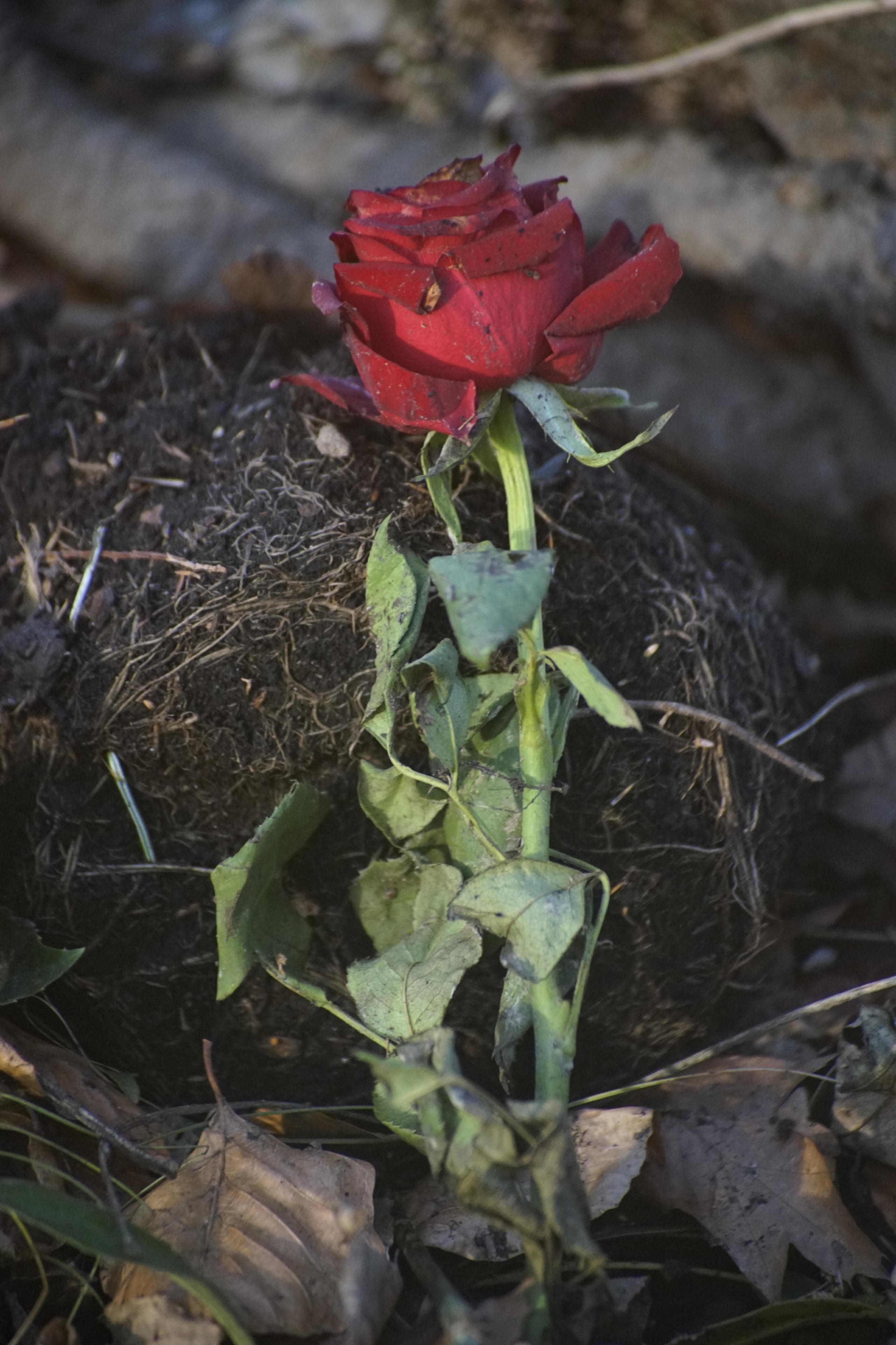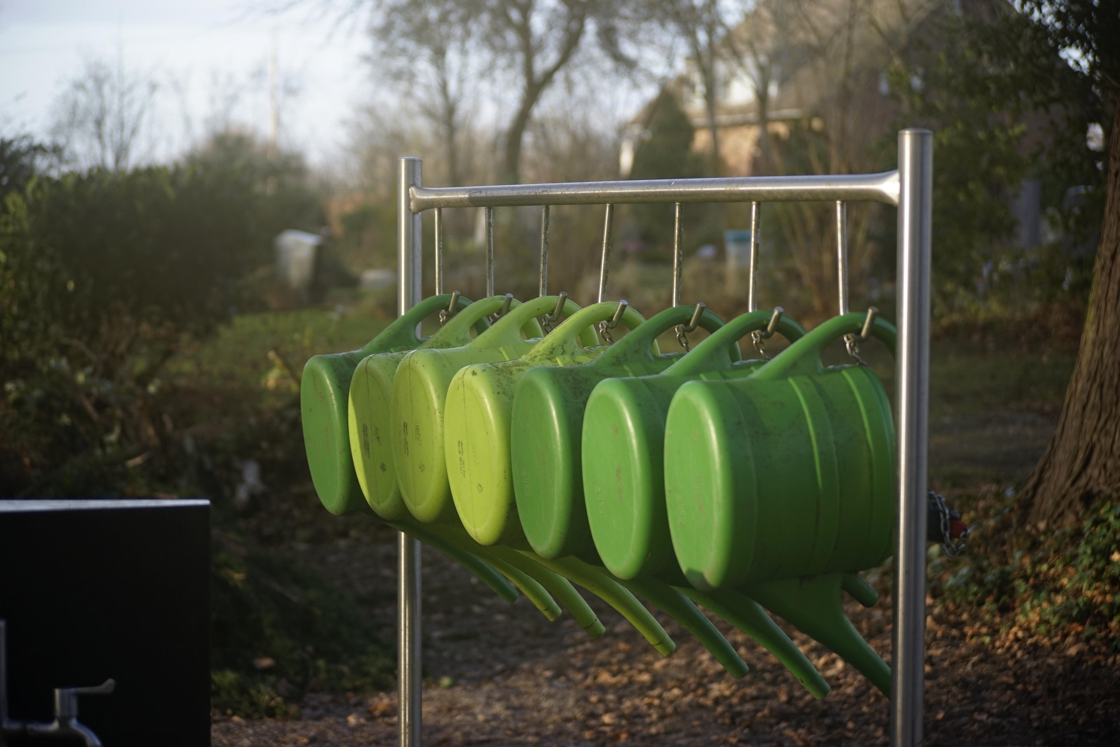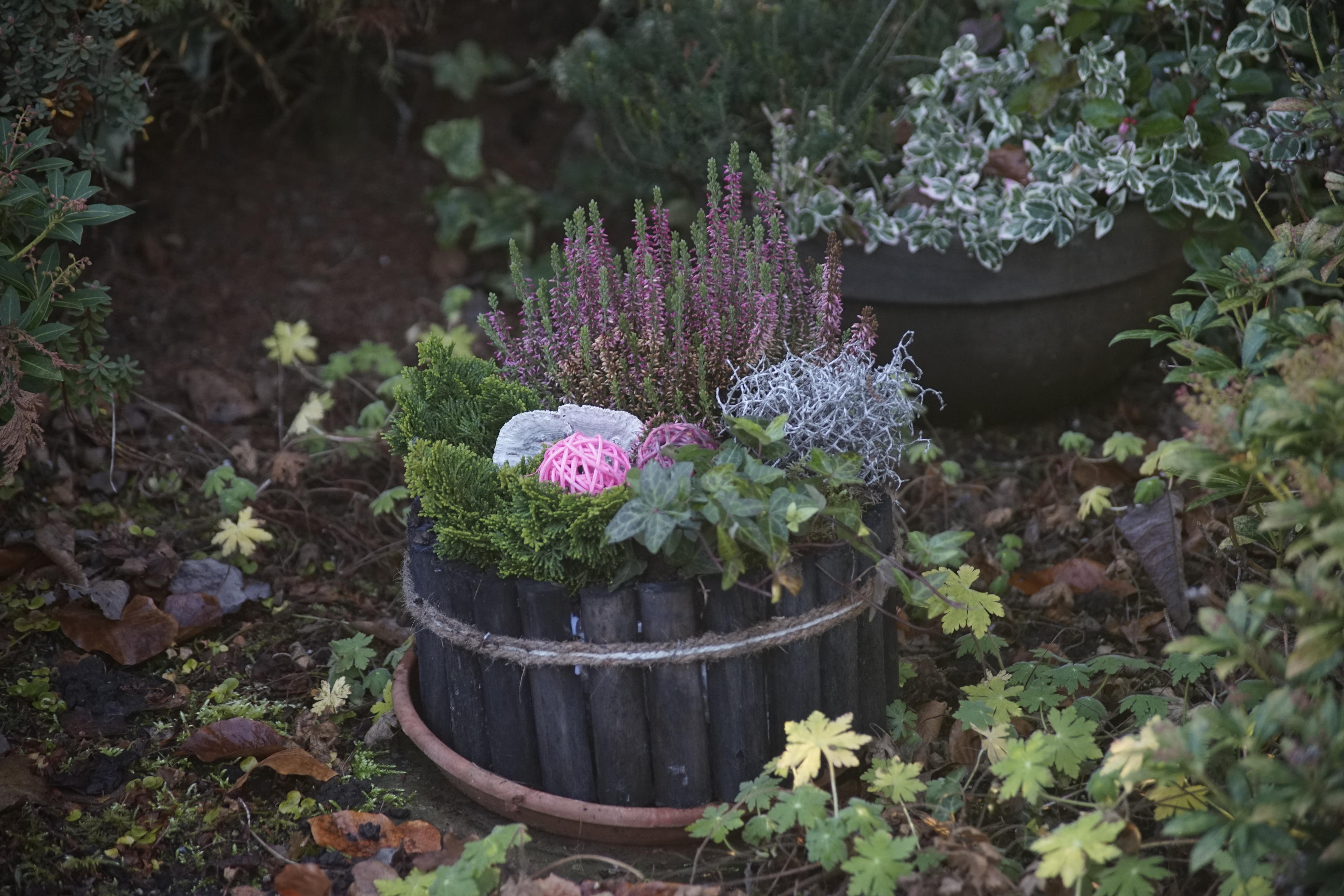 Aber auch die anderen üblichen Motive habe ich mit dem Ding mitgenommen: Gießkannen und Blumen, aber nicht nur die auf fremden Gräbern, sondern auch solche, die bereits im Kompost schlummerten. Die Rose ist doch noch gut! Die geht doch noch! Ach ja, und am Ende dann doch noch ein Bild vom Pott, den wir hier abgestellt haben. Winter-Gemüse. Heidekraut geht immer.