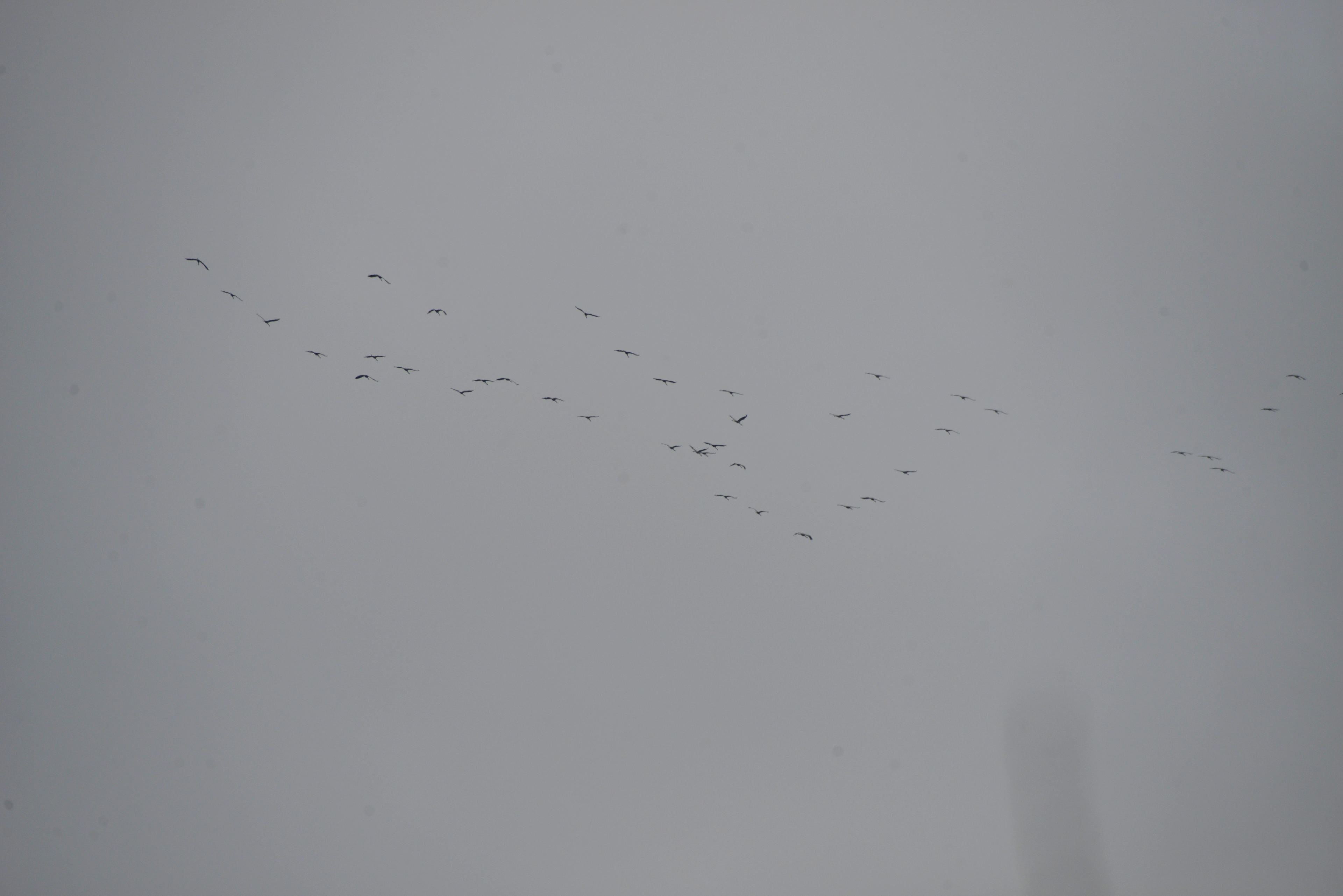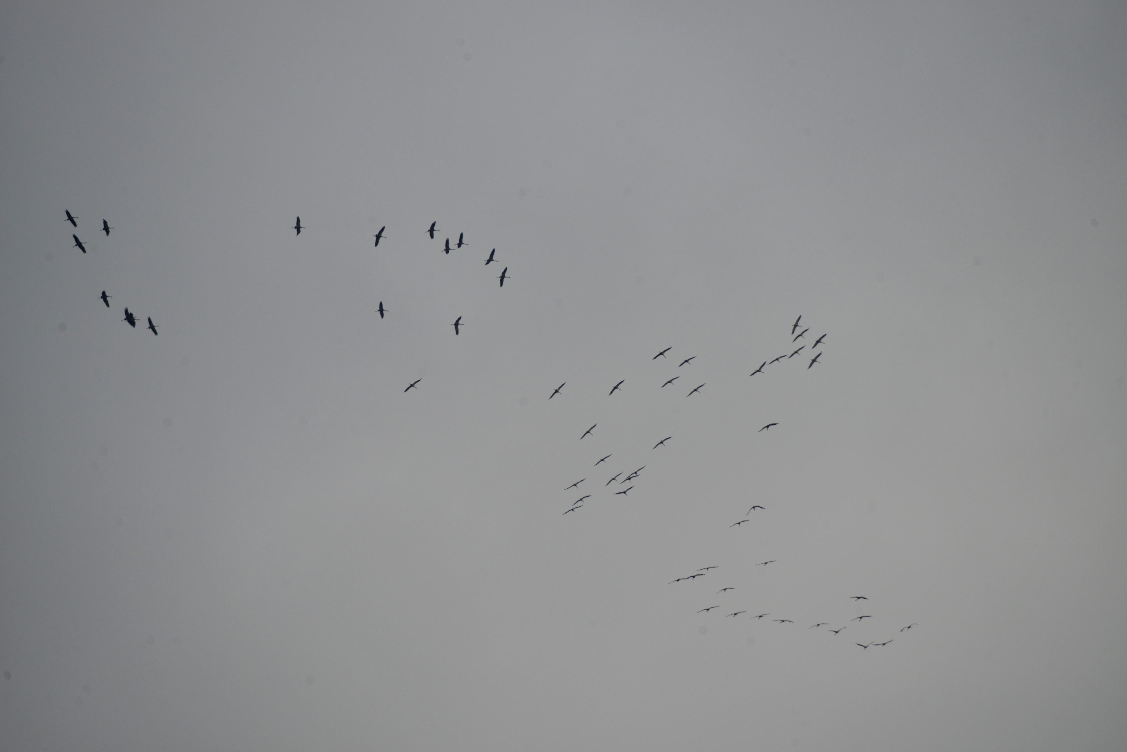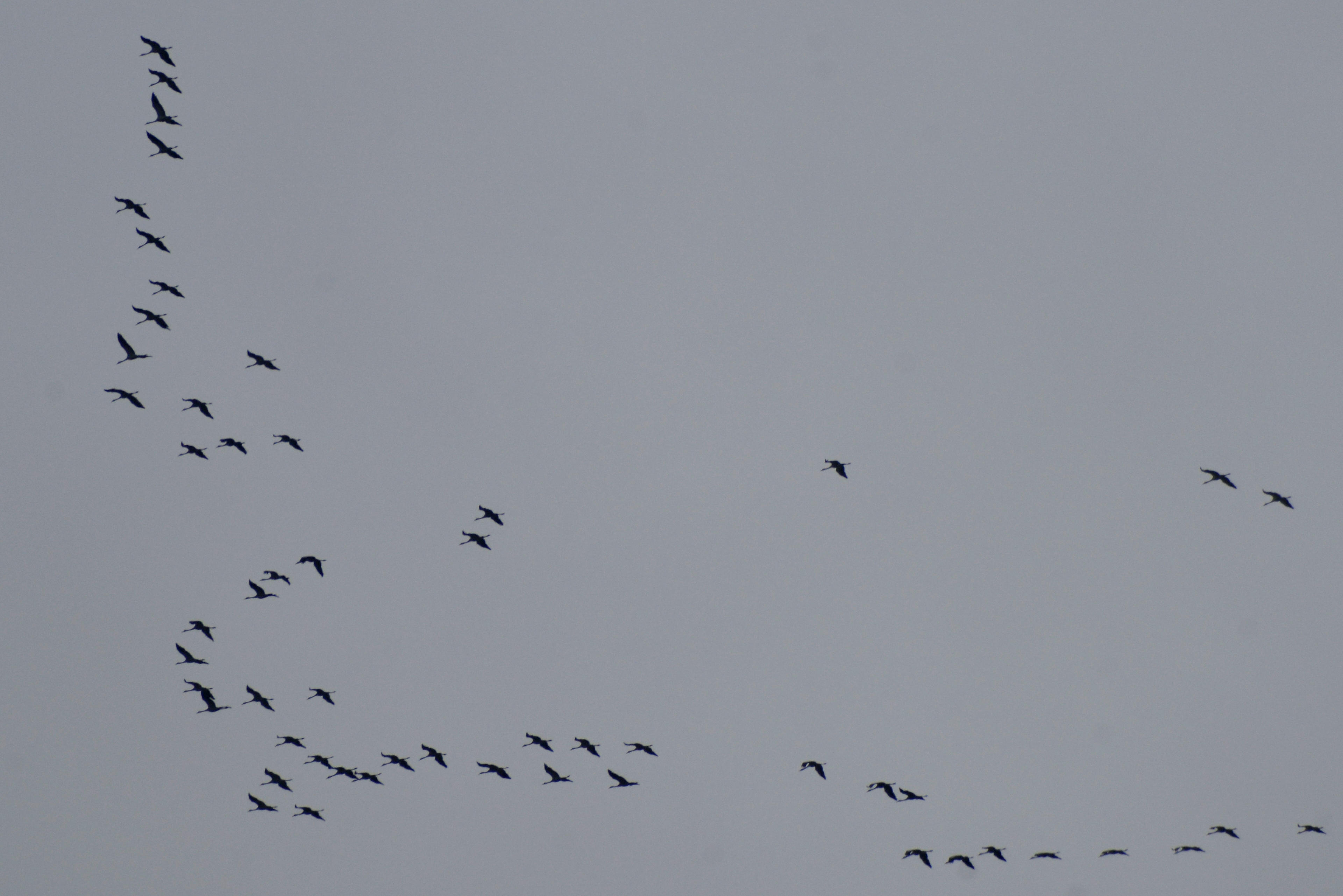 Kurz bevor wir dann los mussten, machte es über uns "krook, krook" und ich habe die Nikon in den Himmel gehalten, um die Kraniche zu fotogrfieren, die über dem Hanfbachtal kreisten. Nachdem die ja letztens erst in Richtung süd-west geflohen waren, als im Norden das schreckliche Schneeunwetter war, kommen die jetzt offenbar Schritt für Schritt zurück. Wobei es im Norden des Landes ja noch immer Stein und Bein friert, wenn man der Tagesschau glaubt. Hoch über Polen, kalte Luft direkt aus Sibirien hält Mecklenburg in eisigem Griff, während hier bei uns im Rheinland, die ganze Zeit das Tief aus Frankreich versucht, durchzubrechen und uns mit Regen, Schnee und Sauwetter zu überschütten. Vielleicht habe ich auch deswegen so einen Lala im Kopf: Das ist die immer wieder unterbrochene Frühjahrsmüdigkeit!