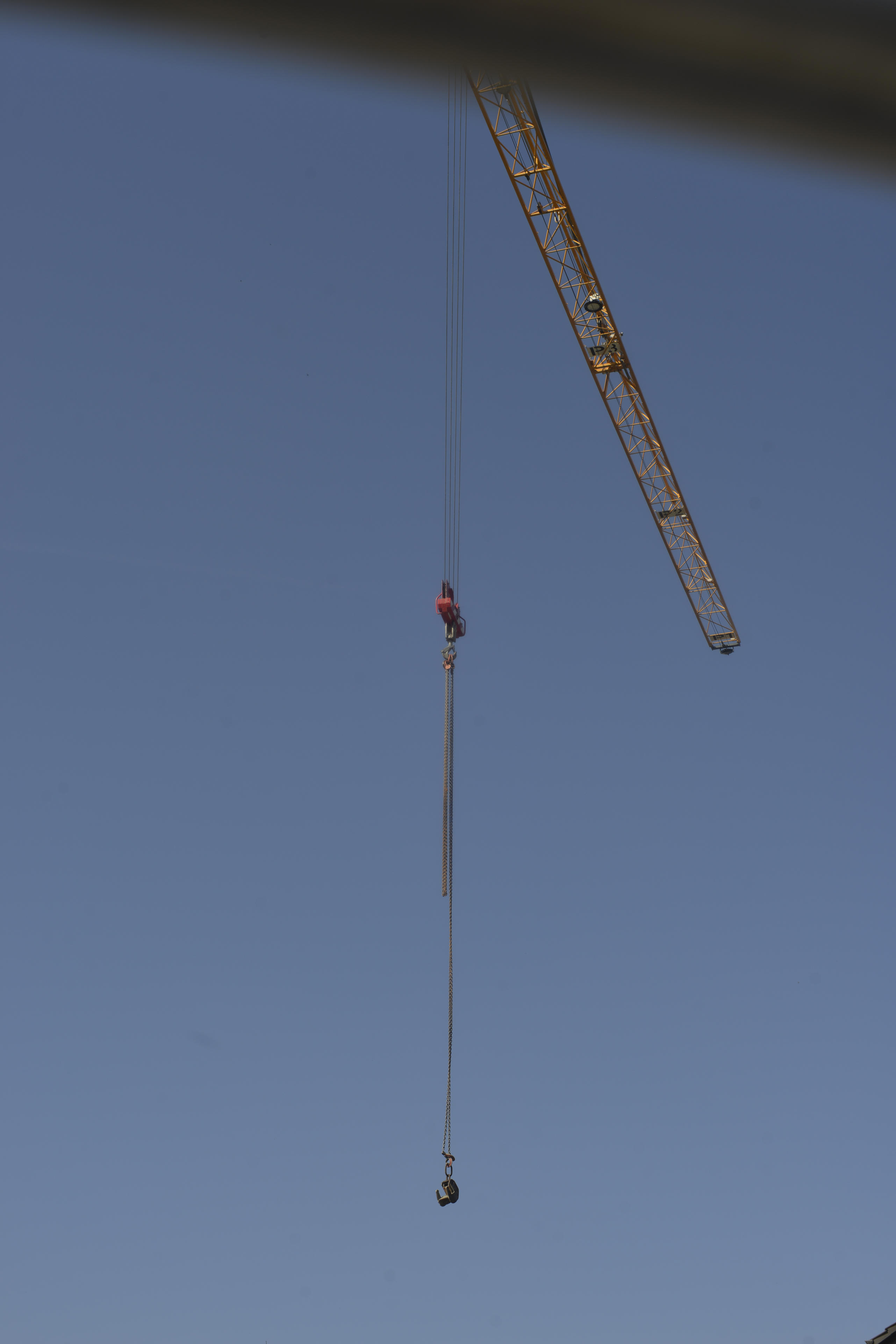 Es war so hell, dass die Kamera leider mit bei f/2 schon an der maximalen Geschwindigkeit anschlug. Ich hätte mal den erweiterten ISO-Bereich nutzen und sie auf 50 ASA runter stellen sollen, dann hätte ich das Schild vor dem Kran auch weit offen drauf bekommen, aber man soll es ja auch nicht bei jeder Gelegenheit übertreiben.