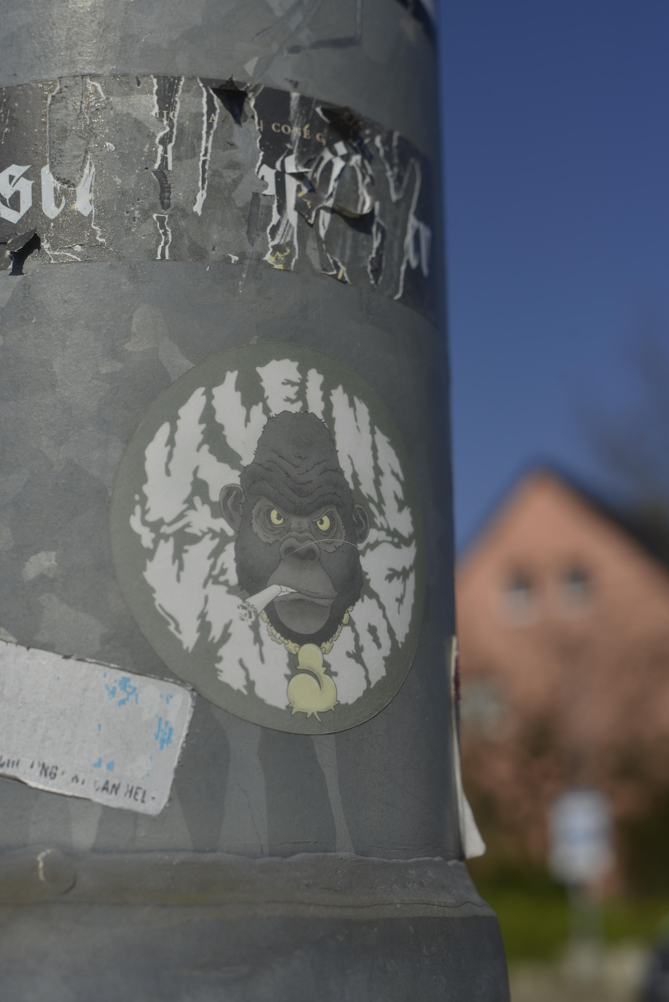 Ich habe echt erstaunlich viele Bilder geschossen, die ich sonst nie gemacht hätte. Da ist der Vorteil von neuem Glas (oder auch hin und wieder mal einer neuen Kamera): Man sieht alt bekannte Stellen in ganz neuem Licht. Und wenn dieses Licht, wie an jenem Tag, auch noch so strahlend hell ist, dass bei f/2 Schluss ist, dann ist das halt so! Umgekehrt hat es den Vorteil, dass man die Blende auch schön weit schließen kann, ohne direkt am anderen Ende der Machbarkeitsskala anzukommen: Selbst f/8 oder f/11 ist hier mit Geschwindigkeiten weit oberhalb der Verwacklungsgrenze möglich gewesen. Das rot umrandete Abwasserrohrschild hat zum Beispiel f/11 und das ist schon erstaunlich, wie knackig das dadurch geworden ist! Das sind ja Blenden, die ich im Allgemeinen vermeide, aber manchmal, da muss es einfach sein. (Außerdem kann ich so hin und wieder überprüfen, wie schmutzig der Sensor ist. (Geht. Ja, da sind Pollen, die mal weg geplasen werden müssten, aber im Allgemeinen hatte ich schon Schlimmeres auf dem CCD kleben!)
