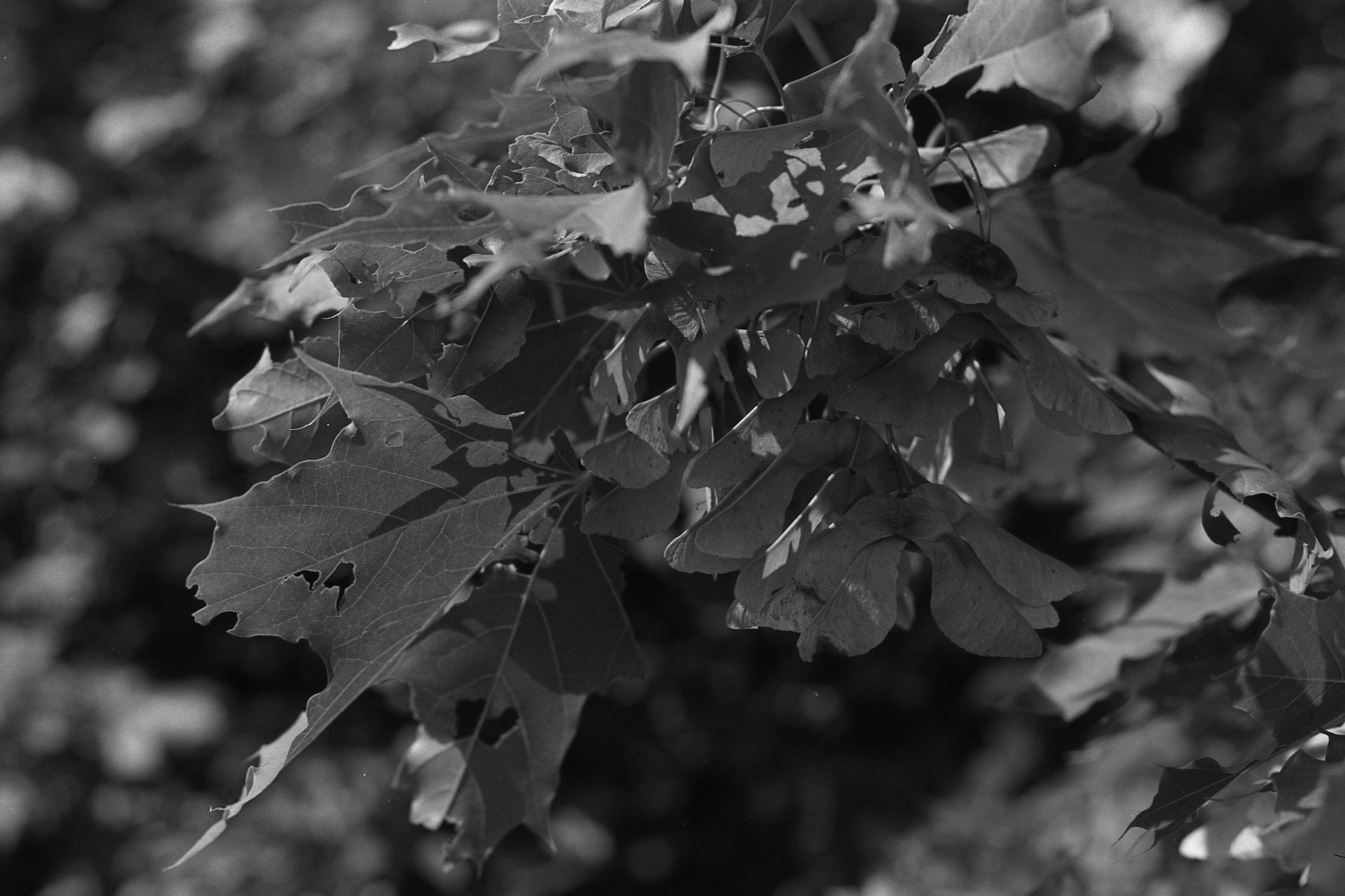 Wenn man auf der Adenauerbrücke ist, hat man den Vorteil, dass man sich praktisch genau auf der Höhe der Baumkronen befindet, sodass man hier auch mal Blätterdetails "auf Augenhöhe" machen kann. (M, 1/250s, f/4.) Weil ich hier mehr Hintergrundunschärfe wollte, habe ich direkt mal den manuellen Modus getestet. Der ist leicht umständlich unter der Klappe oben an der Kamera zu finden und schaltet sich auch atomatisch wieder ab, wenn man diese schließt, und auch die Blende/Zeitwahl über die Gummitasten ist alles andere als benutzerfreundlich, aber besser als nichts. Und das Ergebnis-Foto mit den Ahornnasen drauf, hat auch die korrekte Belichtung, sodass ich diesen Test auch abhaken kann.