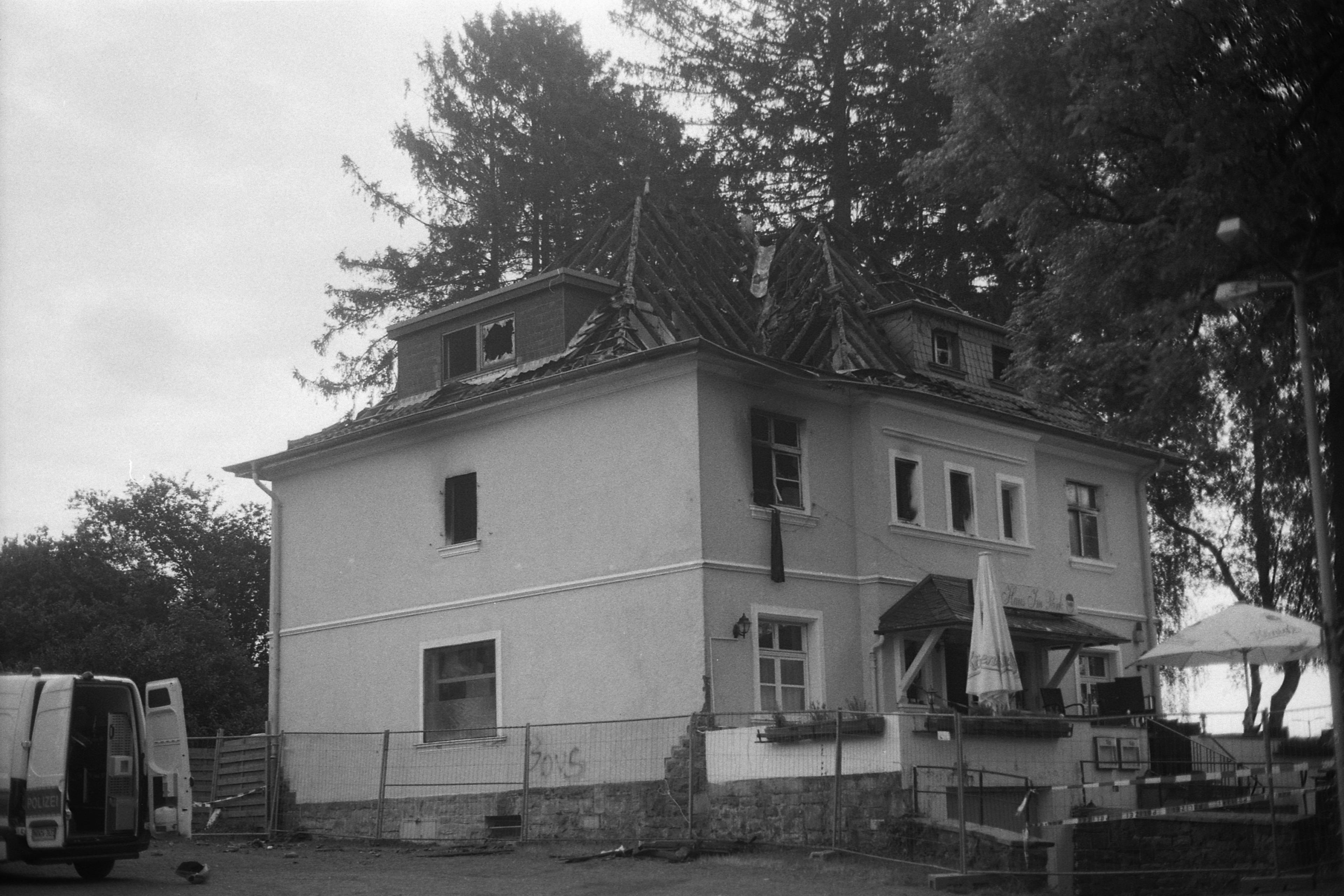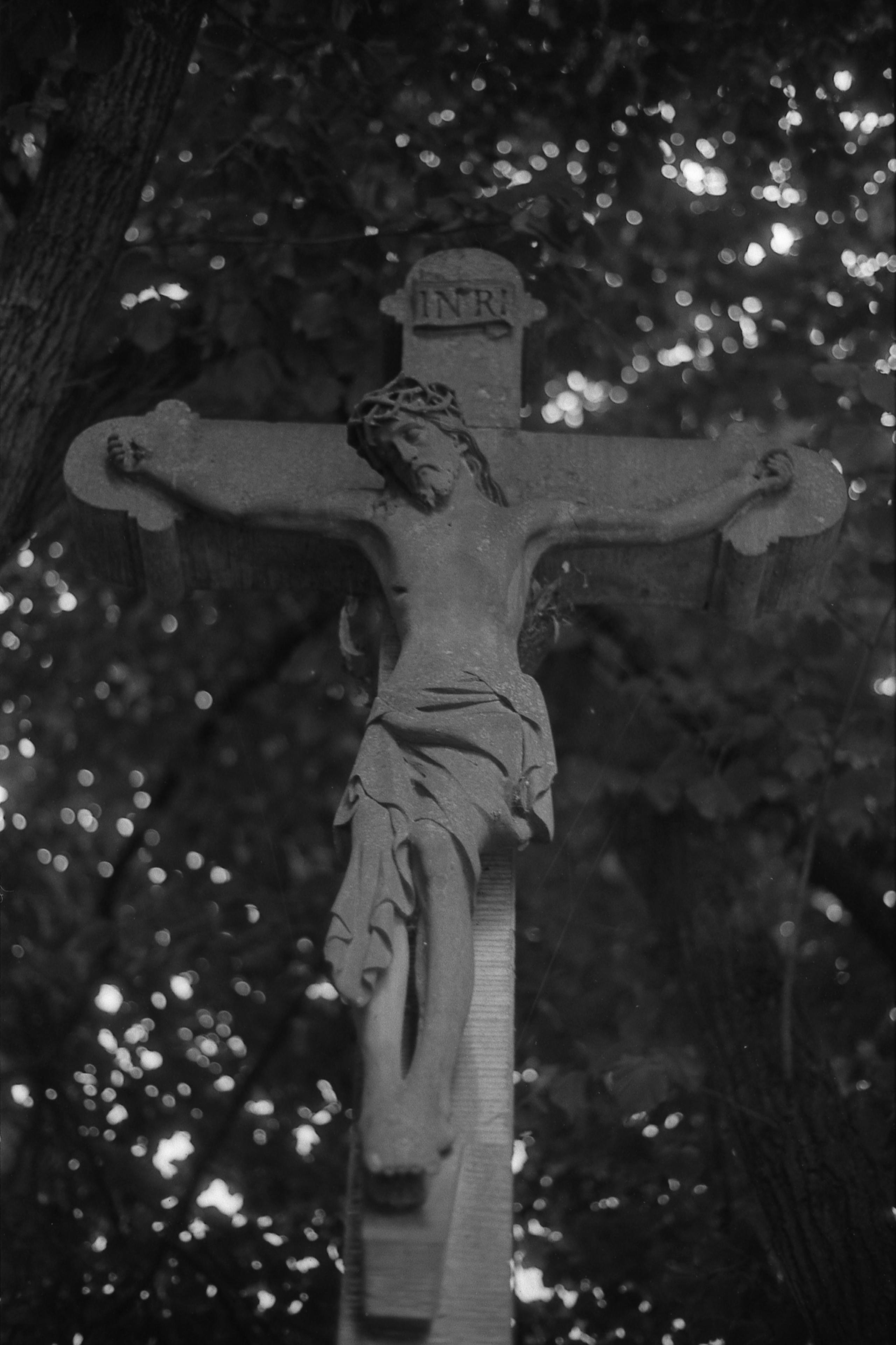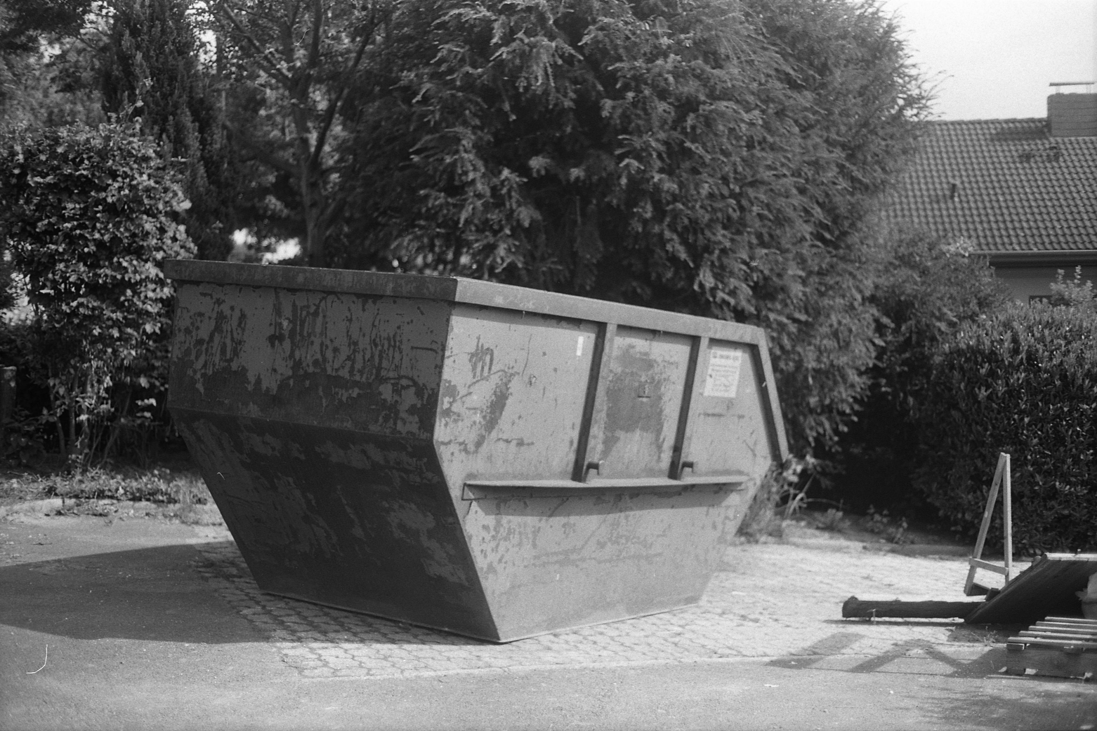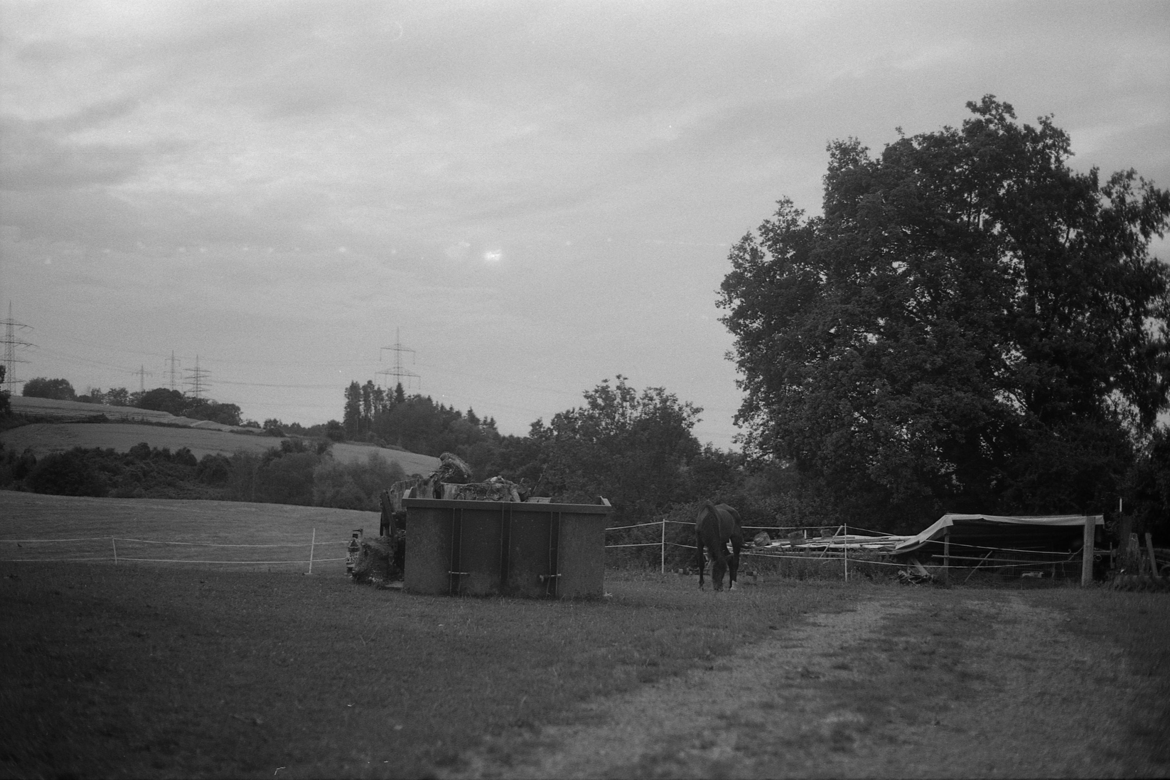 Apropos Kunst: Rot rostende Eisengedönse kommen auf s/w-Film von Foma immer sehr, sehr dunkel daher. (M, 1/500s, f/2.) Und ich konnte manuell die Blende mal ein wenig weiter offen halten. Durch Kontrast und Hintergrundunschärfe hebt sich dieses drahtige Phallus-Symbol schon recht deutlich von seiner Umgebung ab. Krass! Spannendes Foto, finde ich.