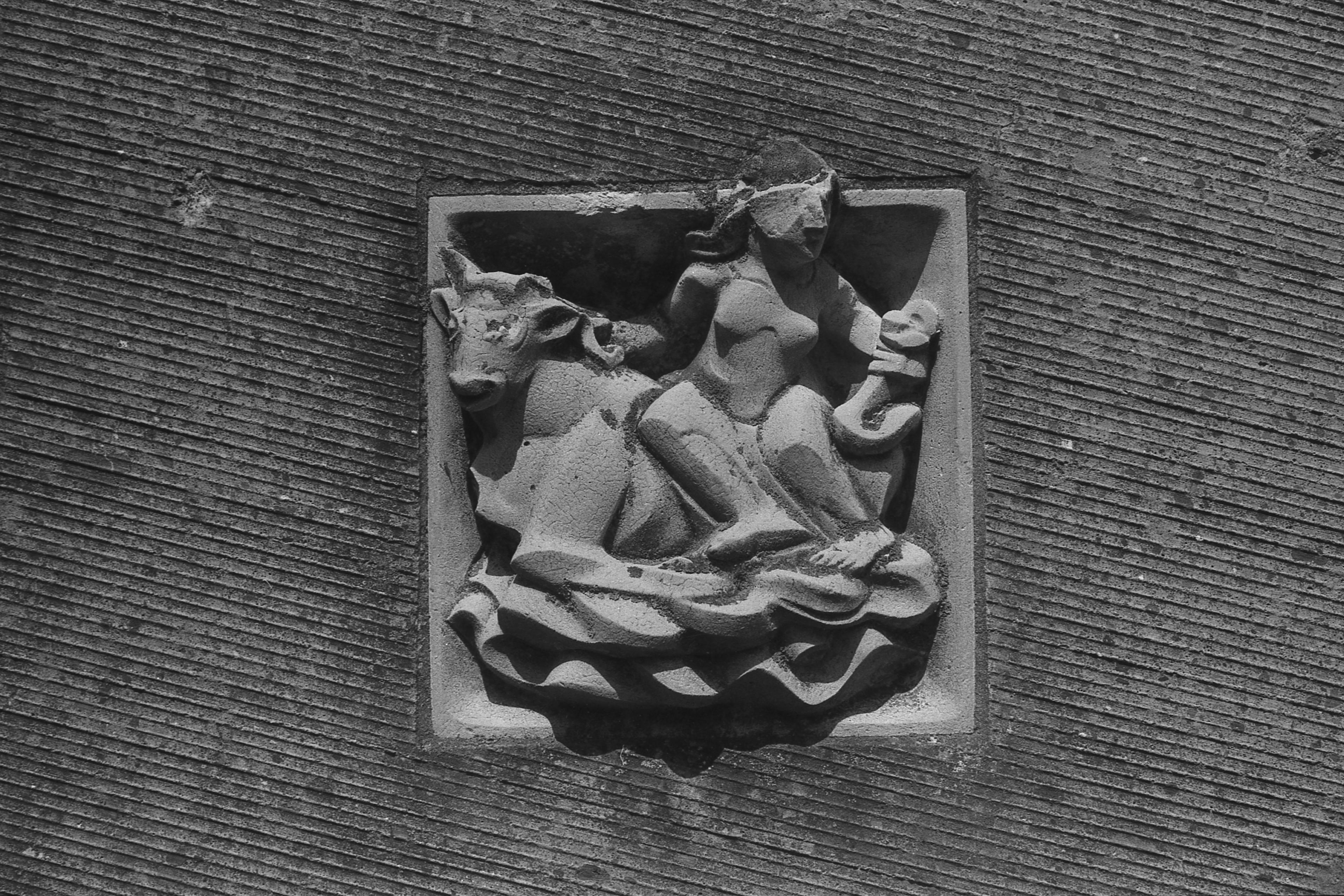 Die Europa auf dem Stier ist ja leider ein bisschen beschädigt, aber das passt ja zur derzeitigen politischen Situation. (P, 1/350s, f/8.) So ganz ausgeknobelt habe ich noch nicht, wann die Kamera welche Blenden bevorzugt, aber hier scheint es ihr mal wieder hell genug gewesen zu sein, um die maximale Schärfe heraus kitzeln zu wollen. Ich hab sie dann mal machen lassen und das Ergebnis ist entsprechend: Durchaus brauchbar, ich hätte hier nichts anderes verwendet. Selbst die feinsten Strukturen sind im Material zu erkennen. Und habe ich tatsächlich mal die Kamera gerade gehalten bekommen? Kann ich gar nicht glauben, da hab ich doch sicher digital dran rum manipuliert!